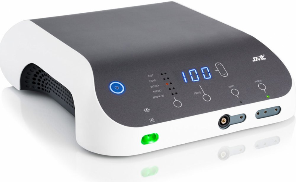 ELEKTROKOAGULÁTOR SMT BM M 250 PF je moderní digitální VF elektrochirurgický přístroj, který najde uplatnění při nejrůznějších operací. Přístroj je řízen vestavěným procesorem, který 100x za sekundu kontroluje činnost zařízení včetně připojení neutrální elektrody, čímž je zabezpečena dokonalá ochrana pacienta. Elektrokoagulátor nabízí monopolární a bipolární provoz s pracovní frekvencí 460 kHz s 5...