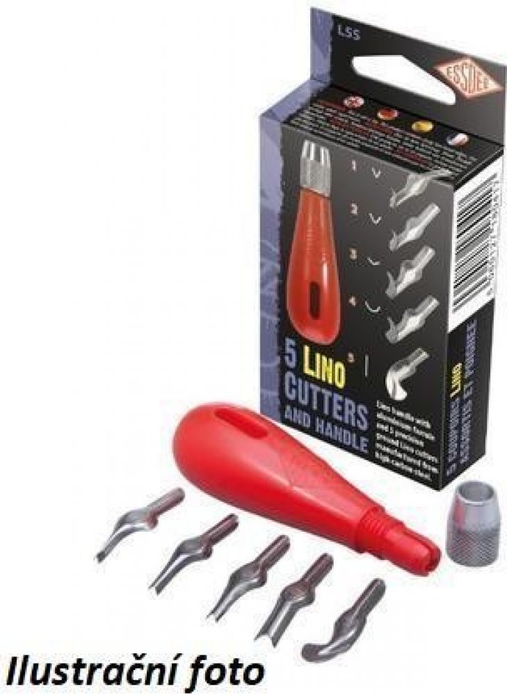 Rydla na linoryt. Násadka + 5 různých nožů. Snadná výměna nástrojů v násadce - stačí povolit převlečnou matici (objímku), vyjmout stávající nožík tahem a vložit nový. Matici poté přitáhnout. POZN. Nástroje jsou ostré, hrozí poranění. Výměnu rydel provádějte v pracovních rukavicích