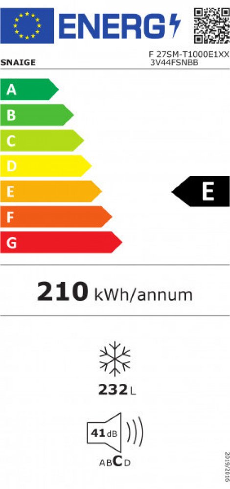 volně stojící Snaige 7 41 dB N-T šuplíkové 60 kg bílé C E 0.575 kWh/24h 20 h 210 kWh *** 232 l 65 cm 60 cm 163 cm 248 l
