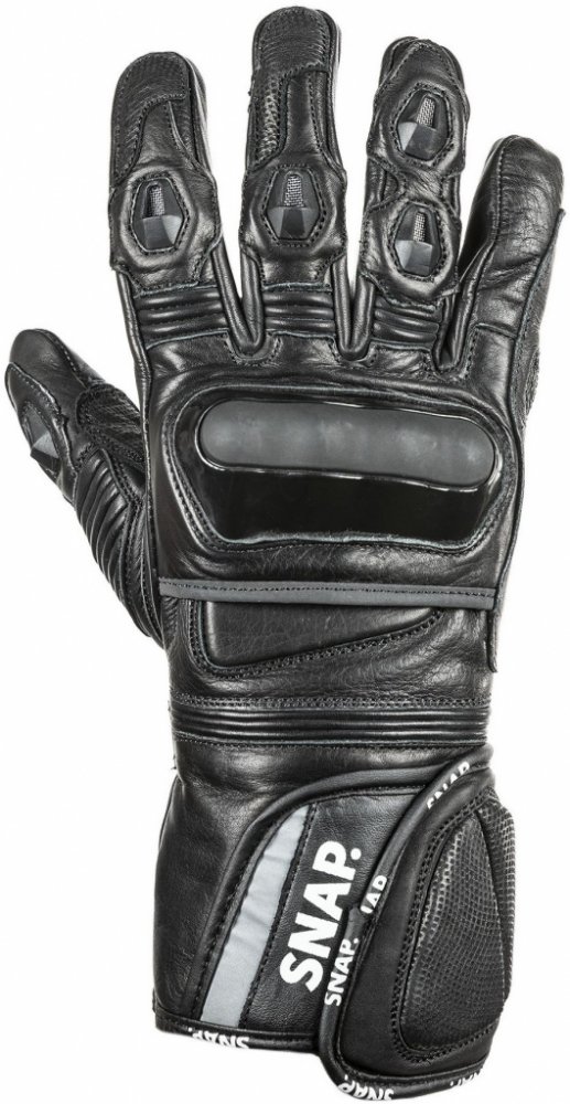 Pohodlné dlouhé rukavice ze 100% kozí kůže s pevnými chrániči.