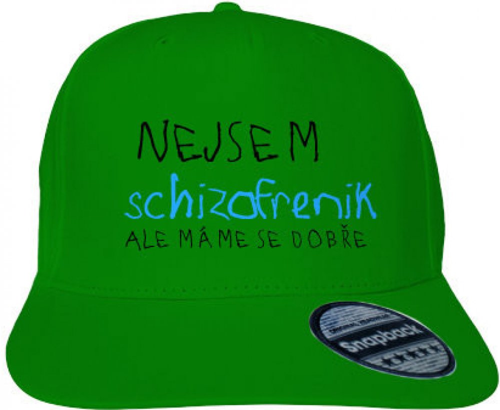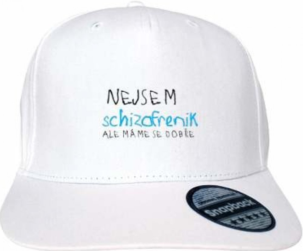 Nejsem schizofrenik, ale máme se dobře! Trpíte rozdvojením osobnosti? Upozorněte na to své okolí předem a dejte si nápis rovnou na tričko. Barvu nápisu lze libovolně měnit.. 100% bavlna (twill), 5 dílná, vysoký profil, plochý kšilt, nastavitelná spona v retro stylu