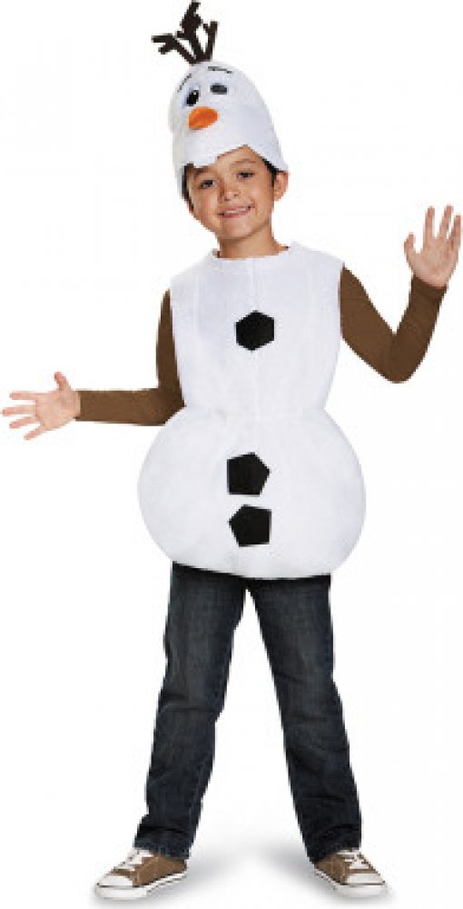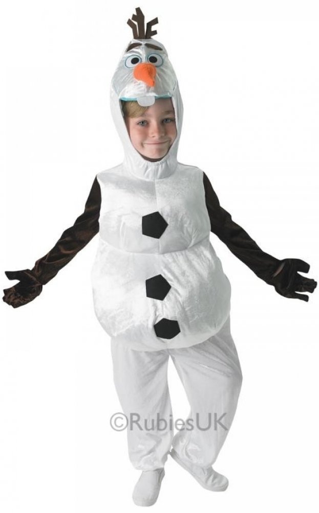Frozen Olaf Značkový výrobek od Rubies Bílý overal s hnědými rukávy, na kterých jsou našité rukavice. Břicho, prsní část a kapuce jsou polstrované bílou výplní. Na kapuci je mrkví nos a obličej Olafa. Materiál: 100% Polyester • Ruční praní