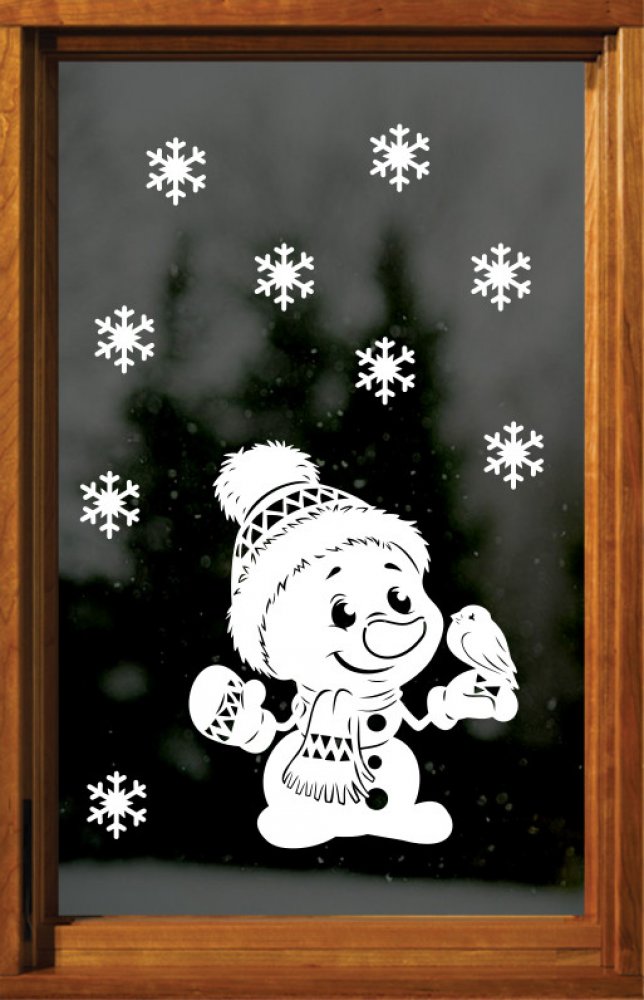 Samolepicí dekorace Sněhulák s ptáčkem