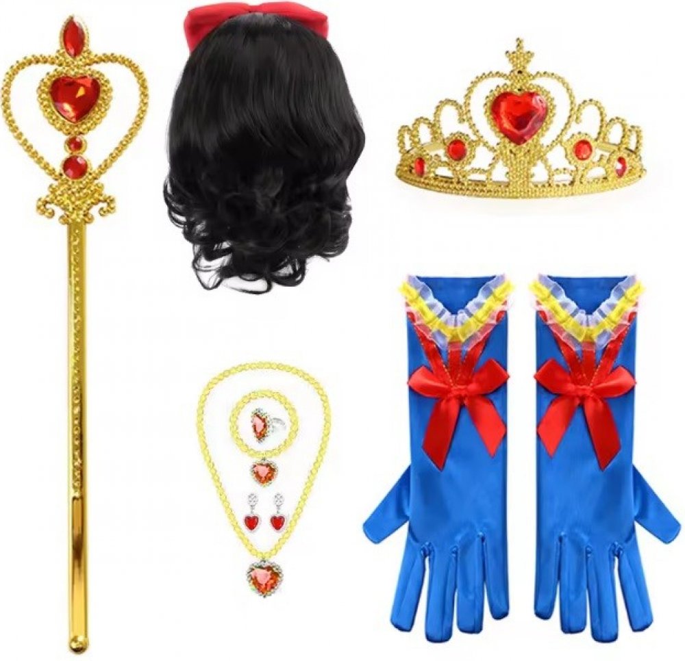 - Šaty: Krásné šaty v tradičních barvách Sněhurky s bohatými detaily a pohodlným střihem, který zajišťuje pohodlí po celý den.