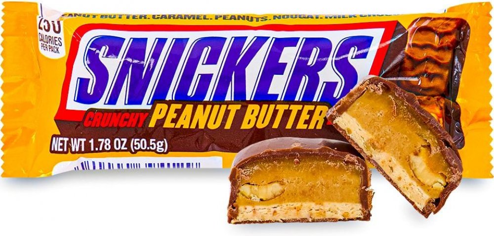 Snickers tyčinka se silnou vrstvou čokolády, uvnitř sladký karamel a křupavé arašídové máslo