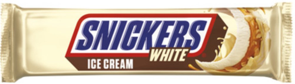 -- Oblíbenou tyčinkou Snickers inspirovaná zmrzlina. Mražený smetanový krém s praženými arašídy a karamelem, zalitý hladkou bílou polevou z kakakového másla.