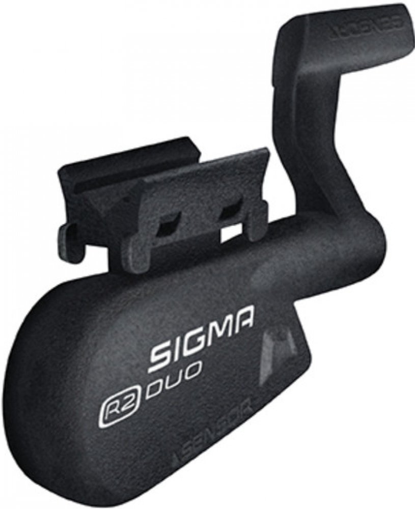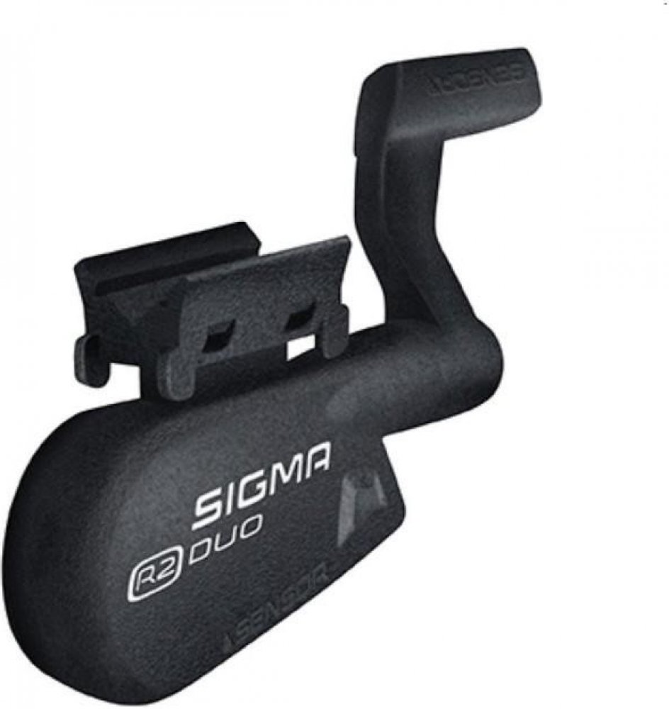 Bezdrátový vysílač Sigma R2 DUO včetně magnetů Power a do osy pedálu. R2 DUO je vysílač rychlosti a frekvence šlapání a používá dvě různé přenosové technologie. Data jsou odesílána přes ANT+ a Bluetooth. Data mohou být současně sdílena ve smartphonu nebo v jiném kompatibilním zařízení přes Bluetooth Smart nebo ANT+.