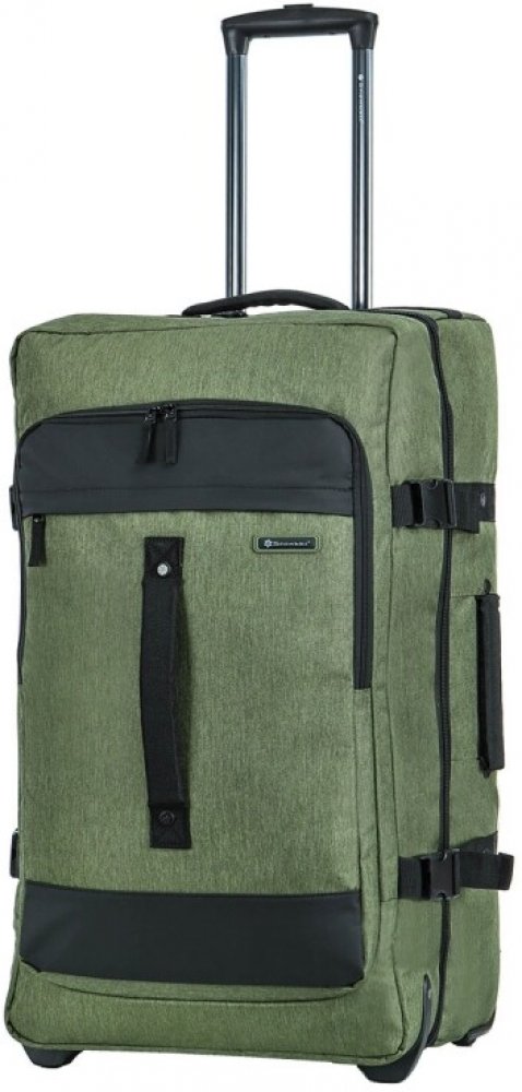 Díky výsuvné rukojeti a kolečkům lze tašku pohodlně vést, zatímco dva pevné úchyty zajišťují komfort při přenášení. Boční kompresní popruhy umožňují dodatečné zajištění a snížení objemu zavazadla.