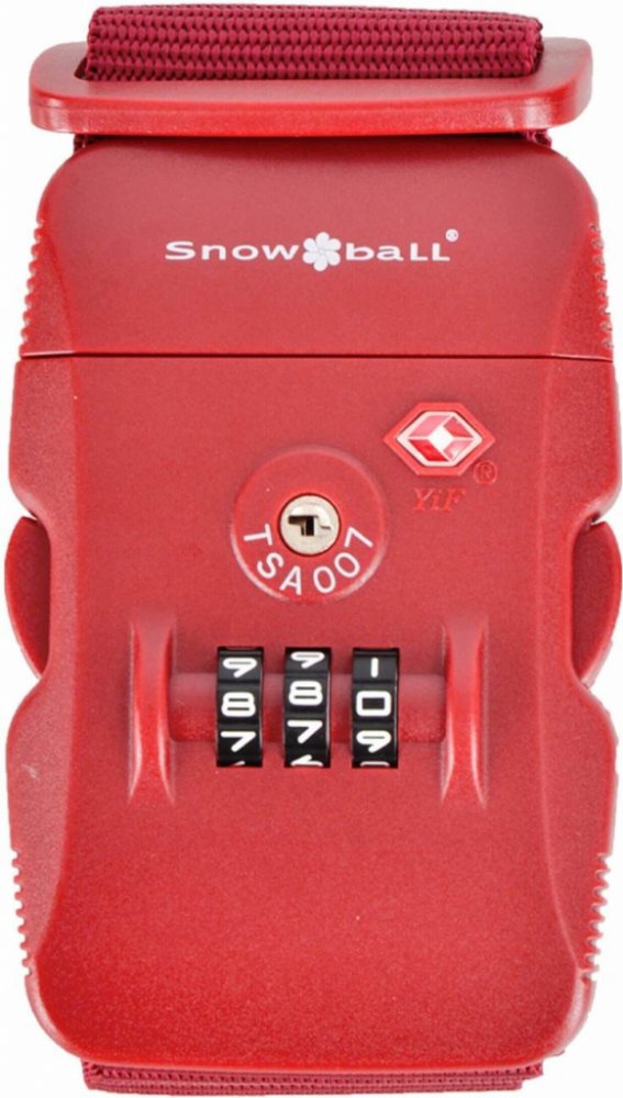 Zajišťovací popruh na zavazadla francouzské značky Snowball s kombinačním zámkem TSA v červené barvě.