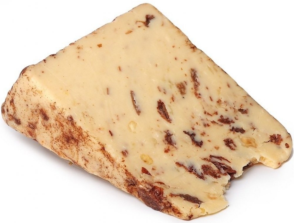 Složení: 75,3 % sýr Lancashire (pasterované kravské mléko, sůl, zákysové kultury, mikrobiální syřidlo), 18,8 % sultánky, 5,6 % kousky sušeného jablka (jablko, konzervant (E220 (siřičitan))), 0,2 % skořicový olej, 0,1 % skořicový prášek.