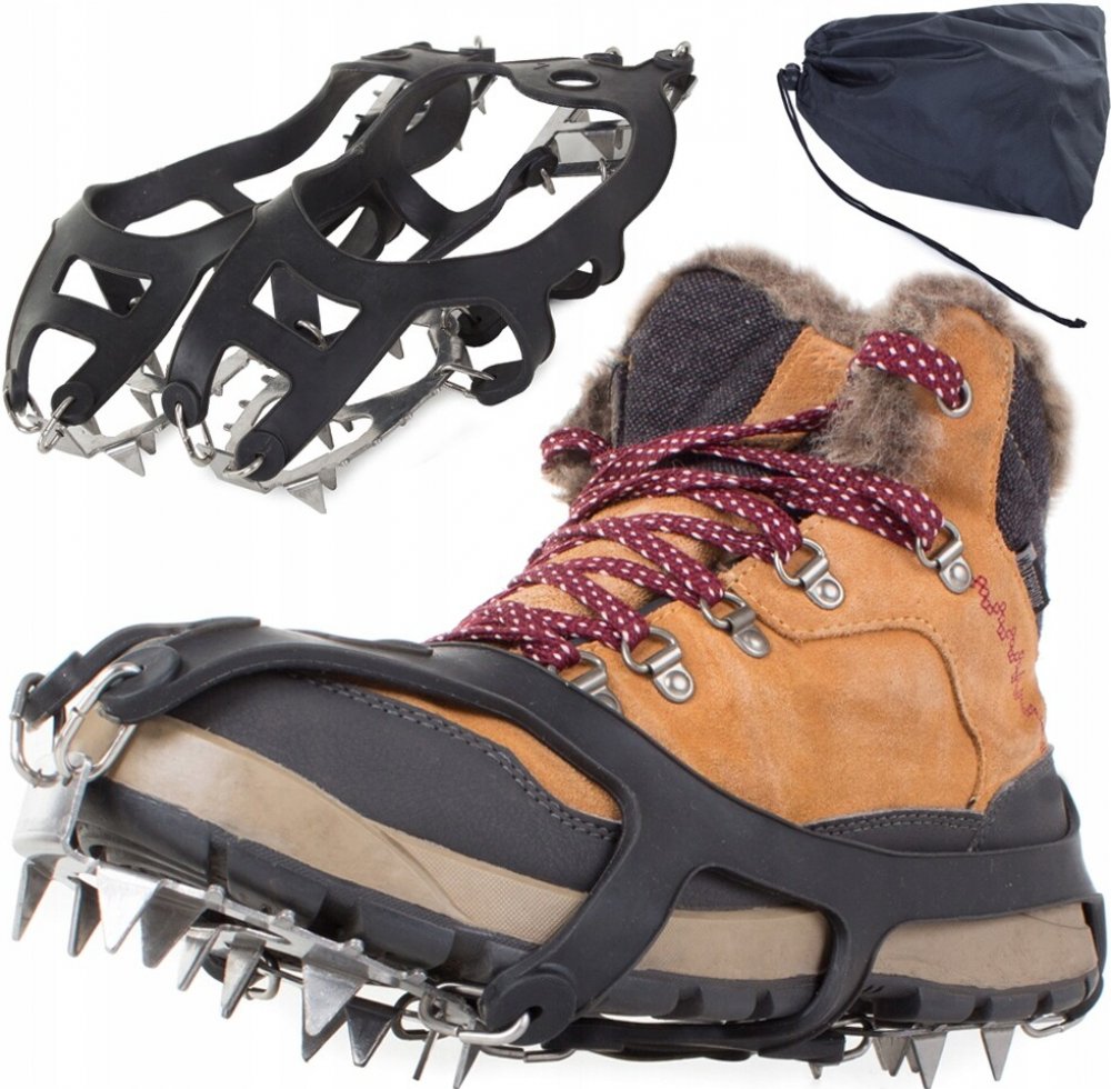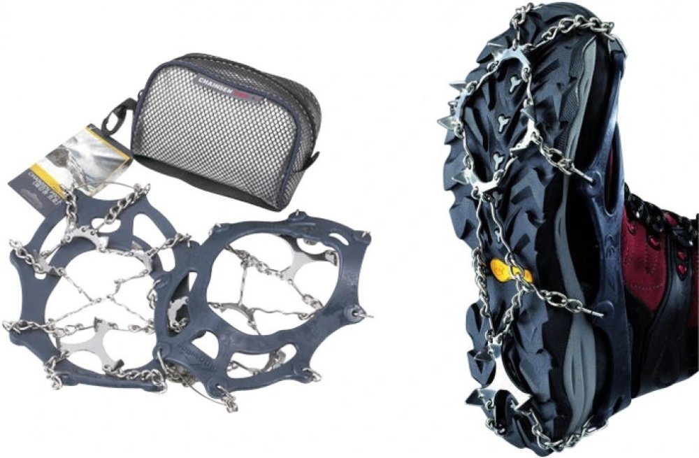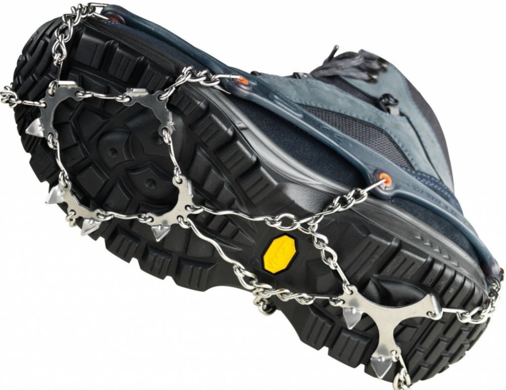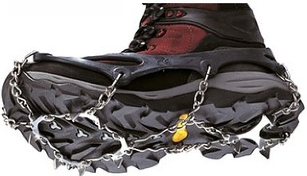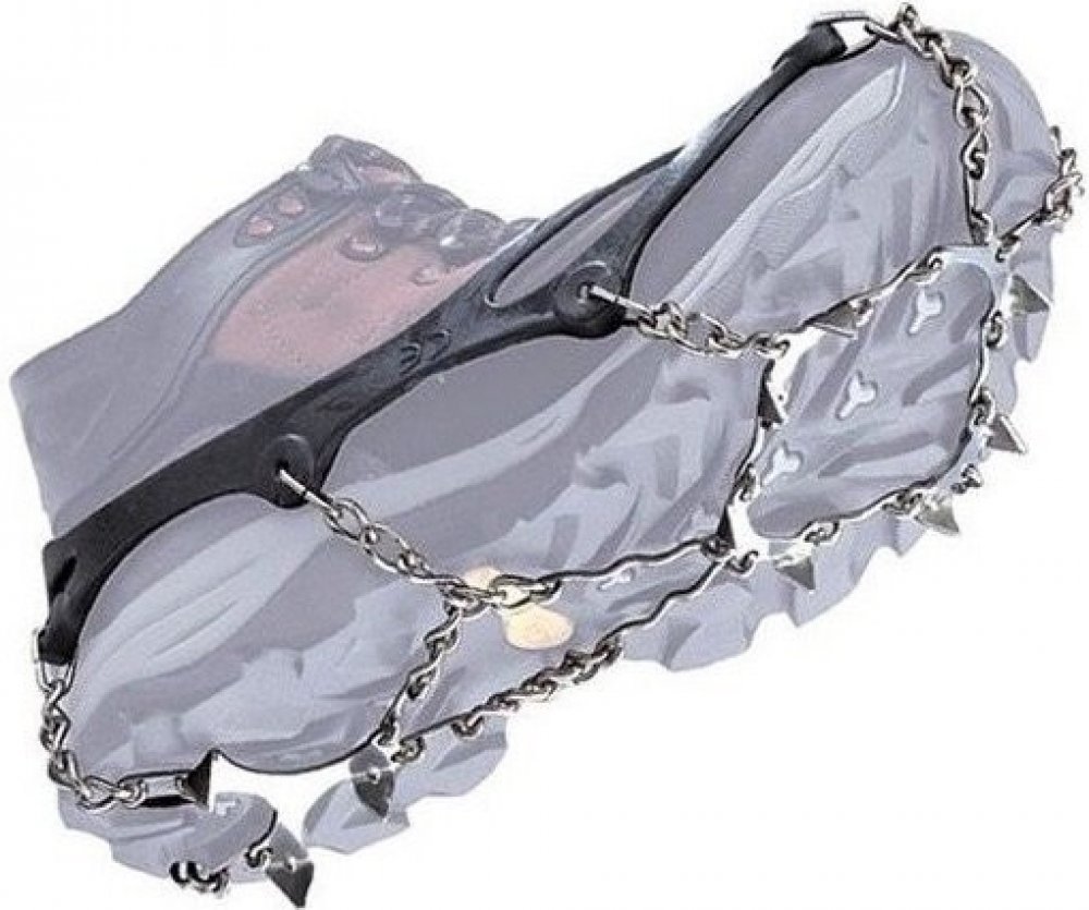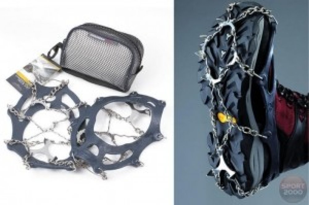 Ocelové hroty na řetízcích na podrážkách Vašich bot. Usnadní chůzi i běh v namrzlém terénu, na ledu, zasněžené cestě, náročném terénu s rizikem uklouznutí. Nejsou to mačky, ale plní podobnou úlohu - dodávají stabilitu a jistotu v terénu, kde hrozí podklouznutí bez ohledu na vzorek a materiál podrážky.