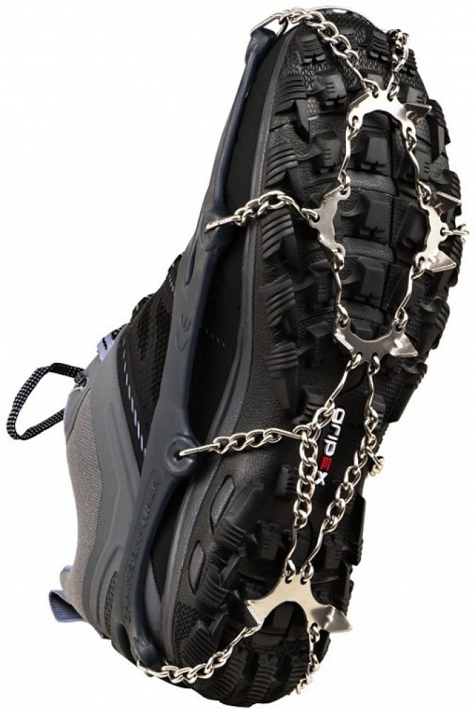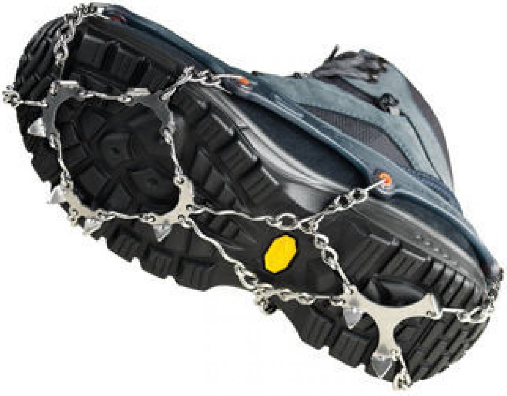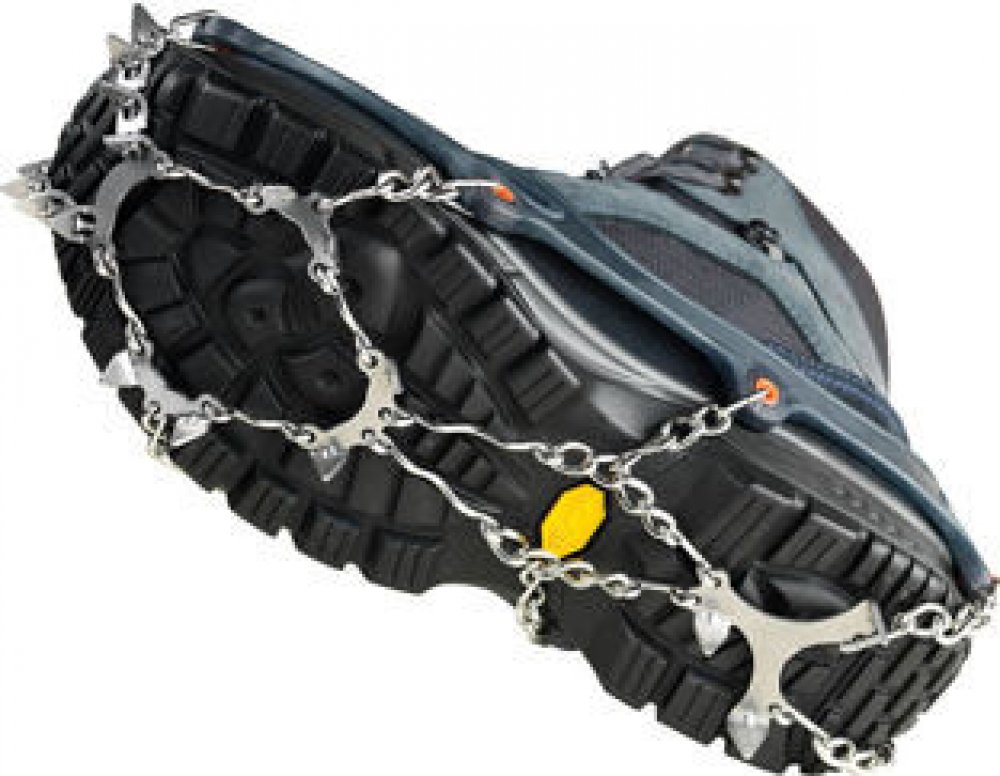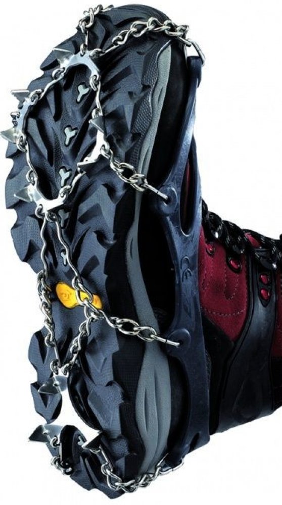Ocelové hroty na řetízcích na podrážkách Vašich bot. Usnadní chůzi i běh v namrzlém terénu, na ledu, zasněžené cestě, náročném terénu s rizikem uklouznutí. Nejsou to mačky, ale plní podobnou úlohu - dodávají stabilitu a jistotu v terénu, kde hrozí podklouznutí bez ohledu na vzorek a materiál podrážky.