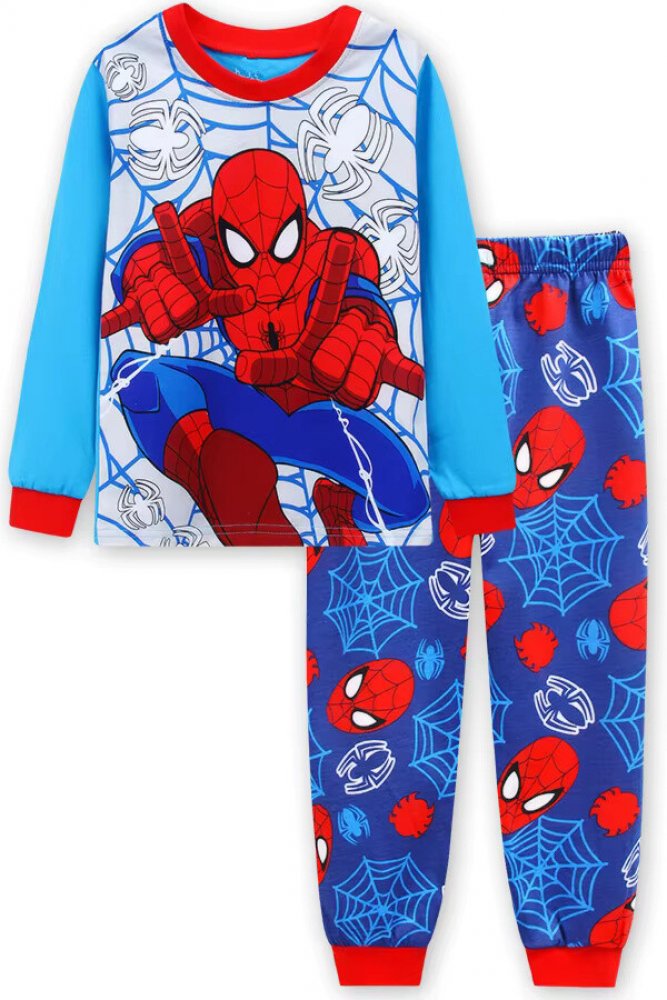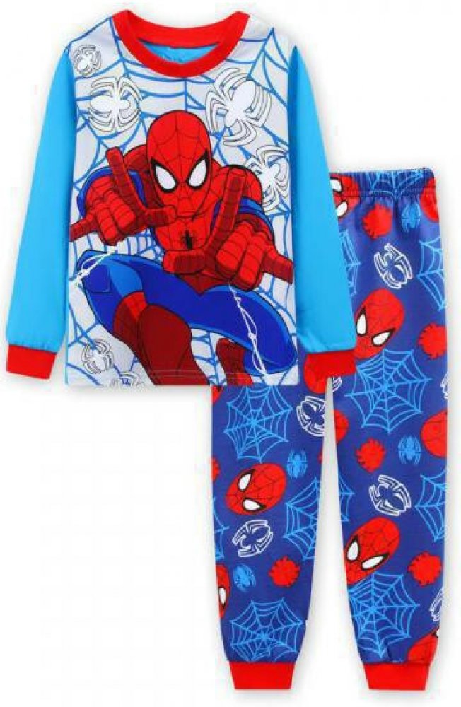Dětské pyžamo Spiderman Noční dobrodružství je skvělou volbou pro všechny malé fanoušky tohoto ikonického superhrdiny z Marvelu.5% lycra Dětské pyžamo Spiderman Noční dobrodružství je skvělou volbou pro všechny malé fanoušky tohoto ikonického superhrdiny z Marvelu.Pyžamový set se skládá z dlouhého trička a pohodlných kalhot, které společně vytvářejí dynamický a akční design. Hlavní dominantou trička je velký potisk Spidermana v akční póze, připraveného vystřelit pavučinu. Pozadí je doplněno bílými pavučinami a pavouky, což ještě více umocňuje autentický komiksový vzhled. Modré rukávy a kontrastní červené manžety dodávají tričku moderní a hravý styl.Kalhoty jsou v tmavě modrém provedení s celoplošným potiskem pavučin, pavouků a Spidermanových masek v typických červených a bílých barvách. Díky elastickému pasu se kalhoty pohodlně nosí, neškrtí a umožňují volný pohyb. Červené manžety na nohavicích zabraňují vyhrnování během spánku a zároveň perfektně ladí s barevným provedením trička. Tento design dává pyžamu dynamický a akční vzhled, který si děti okamžitě zamilují.Pyžamo je vyrobeno z kvalitní bavlny, která je měkká, prodyšná a příjemná na dotek. Tento materiál je ideální pro dětskou pokožku, poskytuje dostatek tepla během chladnějších nocí a zároveň umožňuje pokožce dýchat během teplejších dnů. Bavlna je odolná vůči častému praní, což zajišťuje, že si pyžamo dlouho zachová svůj tvar i barvy. Díky své pružnosti a lehkosti je maximálně pohodlné pro spánek i domácí pohodu.Tento pyžamový set je skvělým dárkem pro malé dobrodruhy, kteří milují Spidermana a jeho napínavé příběhy. Díky jeho stylovému designu a maximálnímu pohodlí se dítě bude každý večer cítit jako opravdový superhrdina, připravený na nová noční dobrodružství.Obsah balení Triko KalhotyRozměry (poloviční obvody měřené naplocho) Triko celková délka cca 47,5 cm Triko šířka v podpaží cca 37 - 44 cm Triko délka rukávu od ramene cca 39 cm Kalhoty šíře v pase cca 25 - 37 cm Kalhoty délka cca 71 cm Velikost 122-128 L (výška postavy v cm)Materiál 95% bavlna 5% lycra