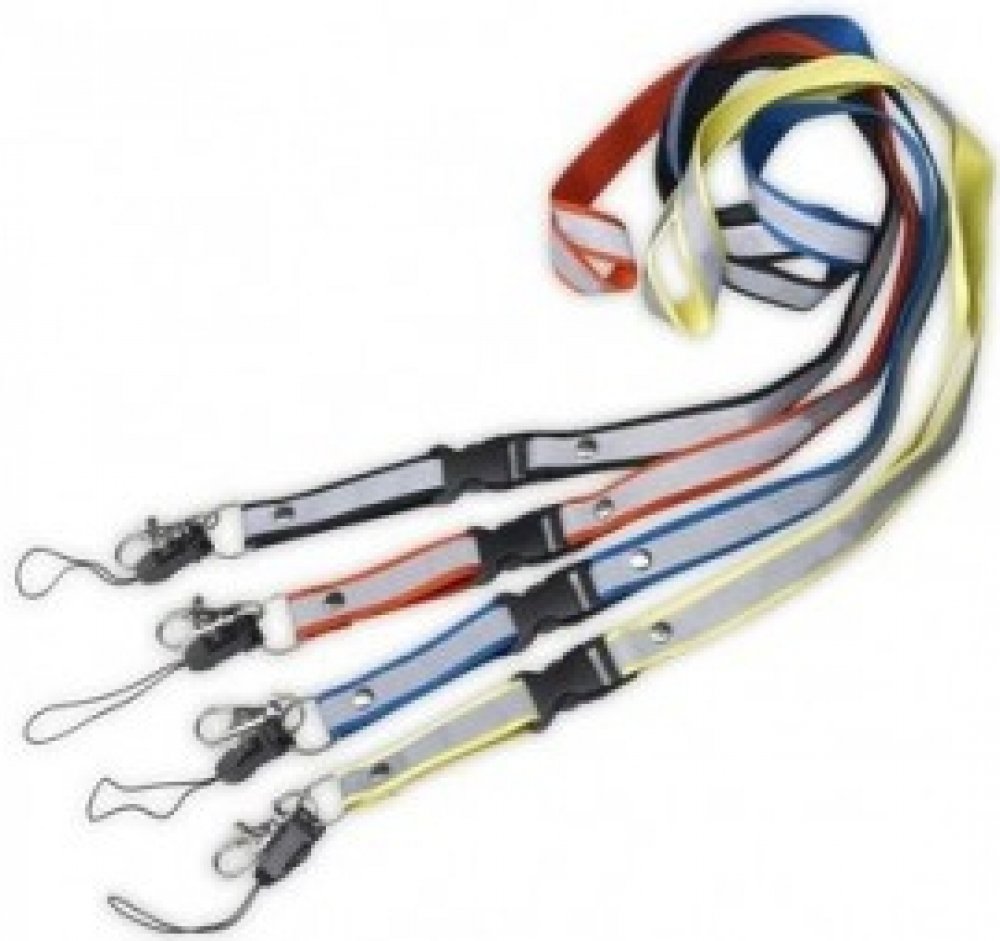 Reflexní klíčenka na krk s karabinkou, červená. Konec šňůrky je opatřen kovovou karabinou pro připevnění vašich klíčů.