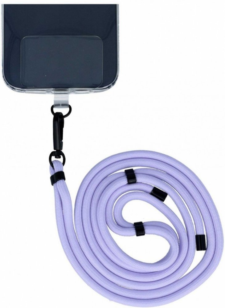 Praktická šňůrka na mobil ve světle fialové barvě.