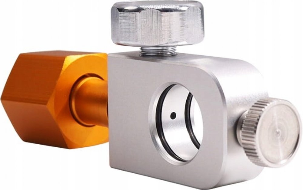 Převodovka pro plnění růžových nábojů s ventilem Quick Connect. V saturátorech vody Sodastream se používají modely: Duo, Art, Terra.
