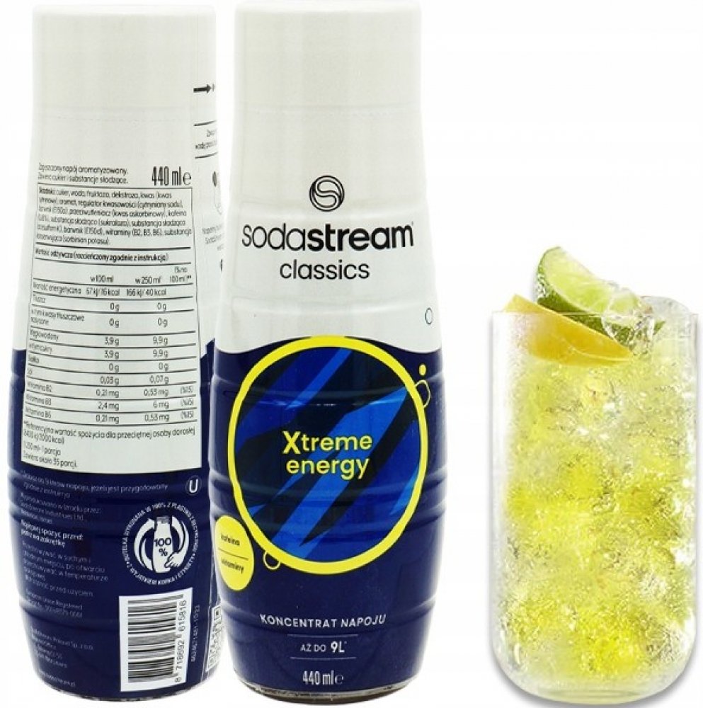 Nápojový energetický koncentrát si nařeďte nejlépe v doporučeném poměru 1:20. Pomůže vám k tomu odměrka ve víčku – jedna dávka na velkou láhev SodaStream. Z půllitru příchutě vyrobíte dvanáct litrů vynikajícího perlivého energetického nápoje. Příchuť má snížený obsah cukru, je doslazována sladidly a neobsahuje alergeny. Naopak obsahuje kofein a kombinaci vitamínů B. Zajímá vás energetická hodnota vzniklého nápoje? 100 ml = 60 kJ / 14,4 kcal.