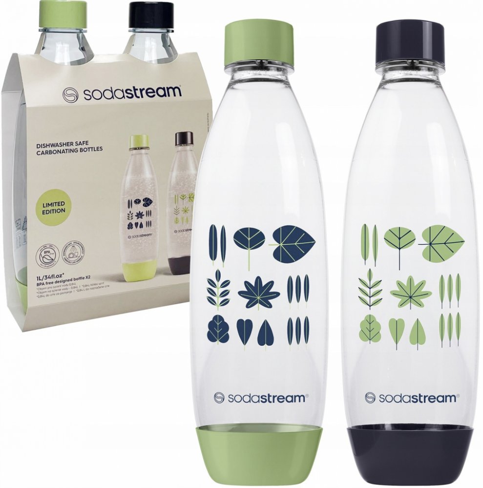 Sada obsahuje 2 tlakové nápojové lahve v jedinečném designu, inspirovaném přírodou. S přírodními motivy v příjemných odstínech zelené a tmavě modré barvy, tyto lahve nejen osvěží vaše nápoje, ale také přinesou do vašeho prostoru příjemný dotek přírodní elegance.