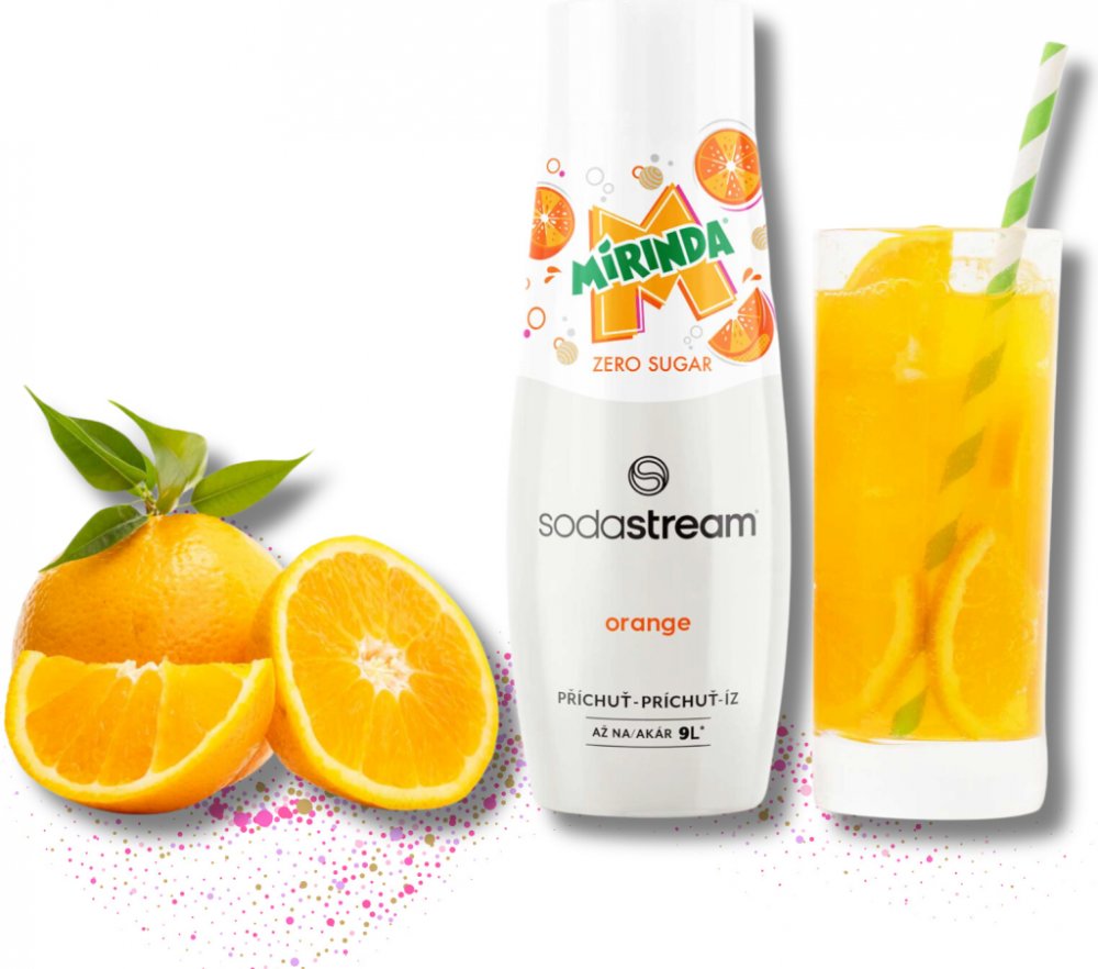 Sodastream MIRINDA SodaStream tekutý koncentrát citrusové v plastové láhvi bez cukru přírodní aroma 0.44 l 1:19 9.0 L 0.1 g per 100 ml 1.0 kcal per 100 ml