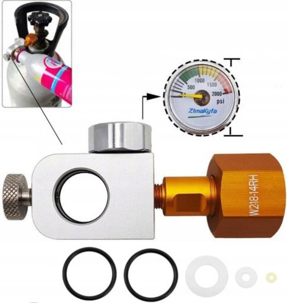 - Zcela zaplněno. Nejprve uzavřete ventil velké nádrže na CO2 a poté odšroubujte odvzdušňovací ventil, aby se uvolnil plyn. Fyzické zobrazení