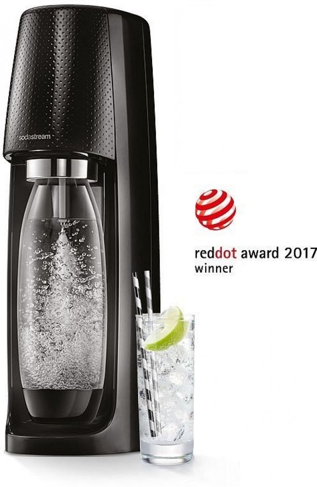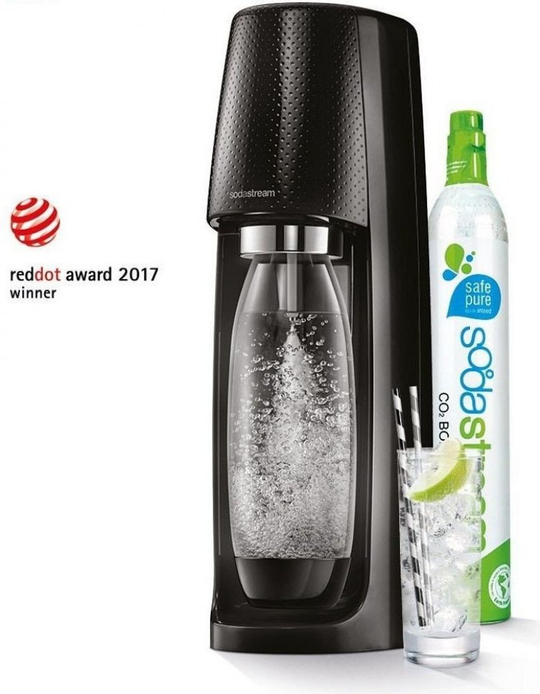 Přístroj Sodastream Spirit Black. Sada pro výrobu domácí perlivé vody. Obsahuje výrobník Spirit se samočinnou výrobou perlivé vody a nastavitelnou mírou perlivosti, odolnou plastovou tlakovou láhev a bombičku s náplní CO2 až na 80l domácí perlivé vody.