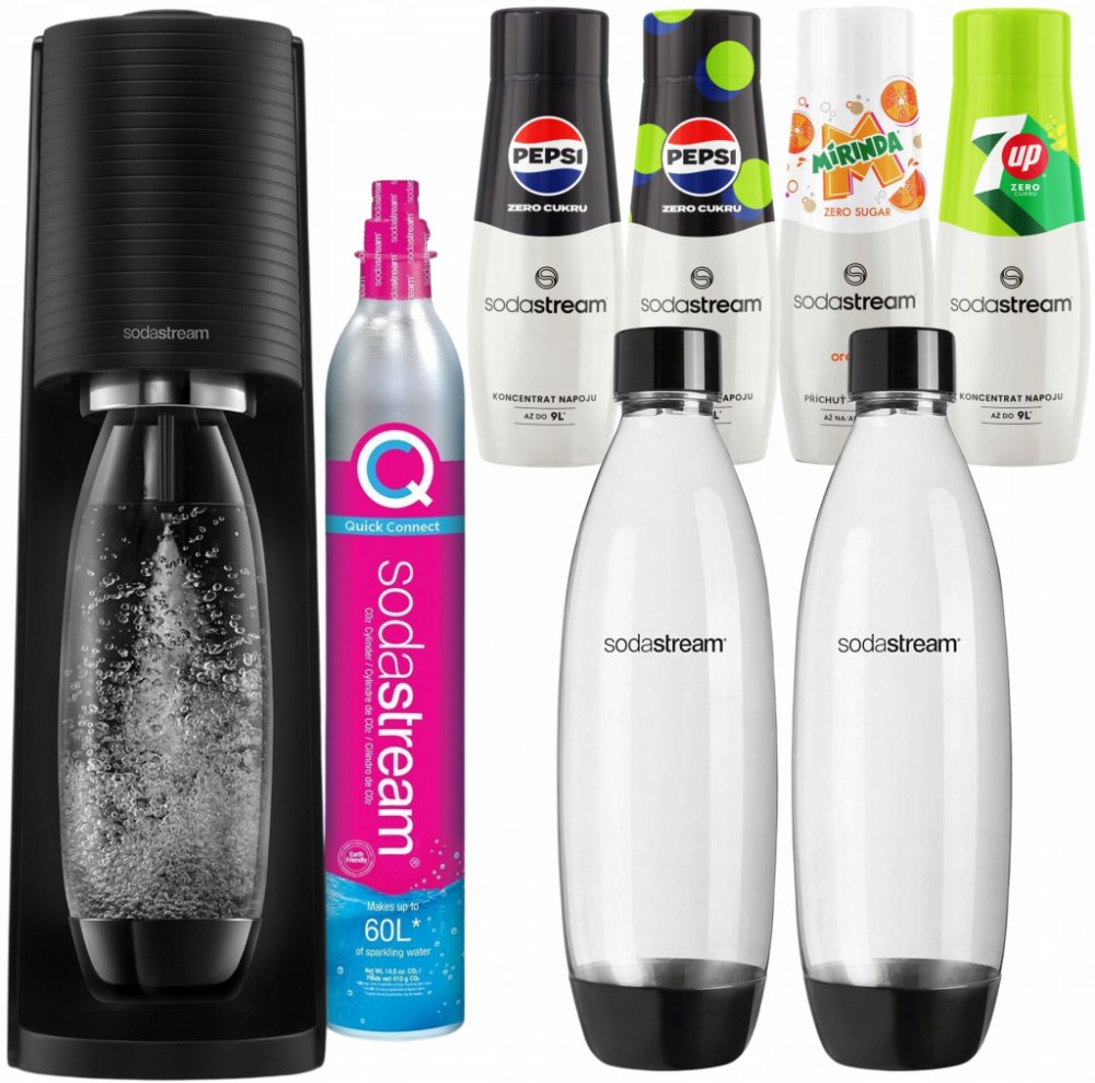 SodaStream Terra Black + 2 lahve + 4 sirupy bez cukru