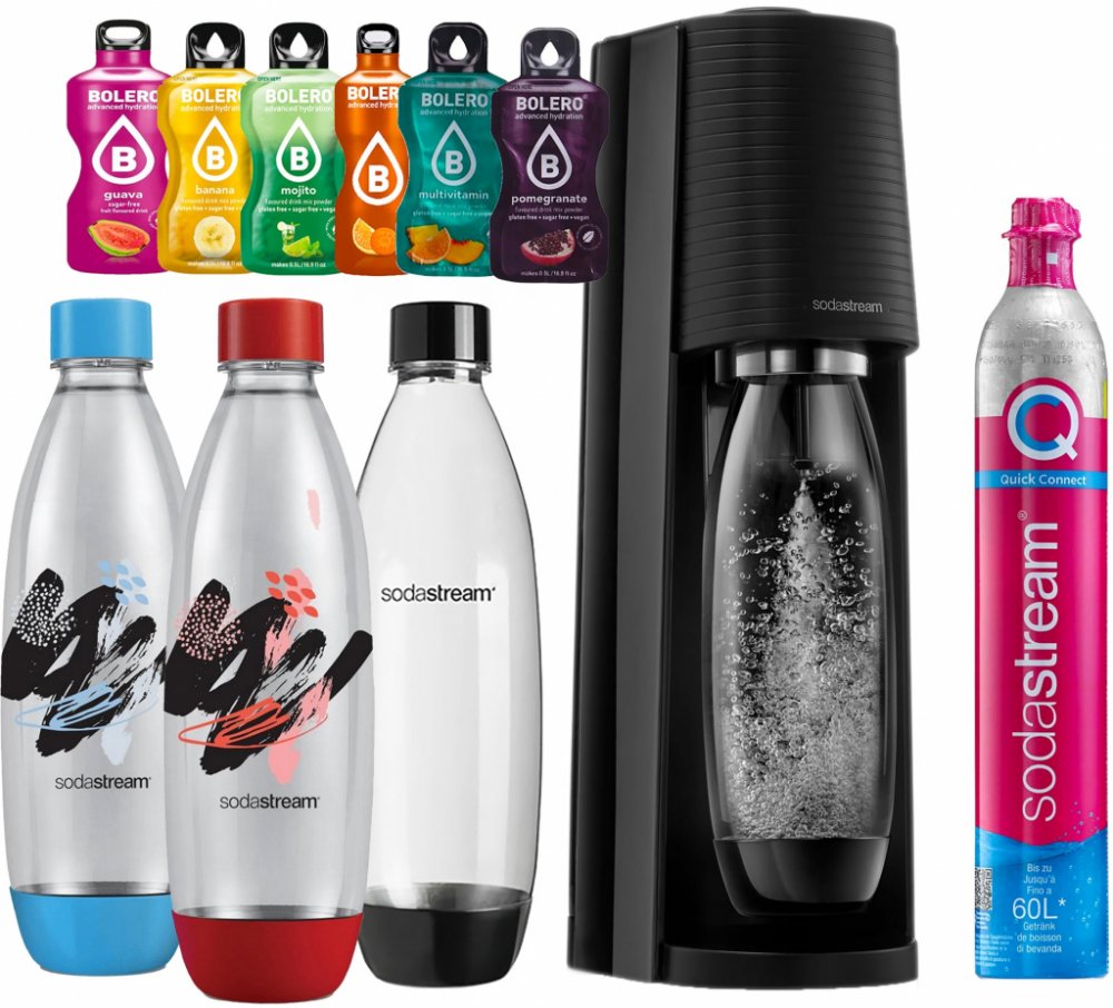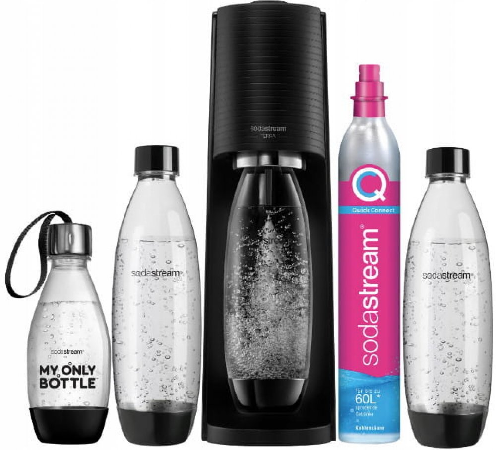 SodaStream TERRA s černým matným povrchem je snadno ovladatelný a mimořádně elegantní výrobník perlivé vody, který během několika sekund promění obyčejnou vodu v lahodný bublinkový nápoj.