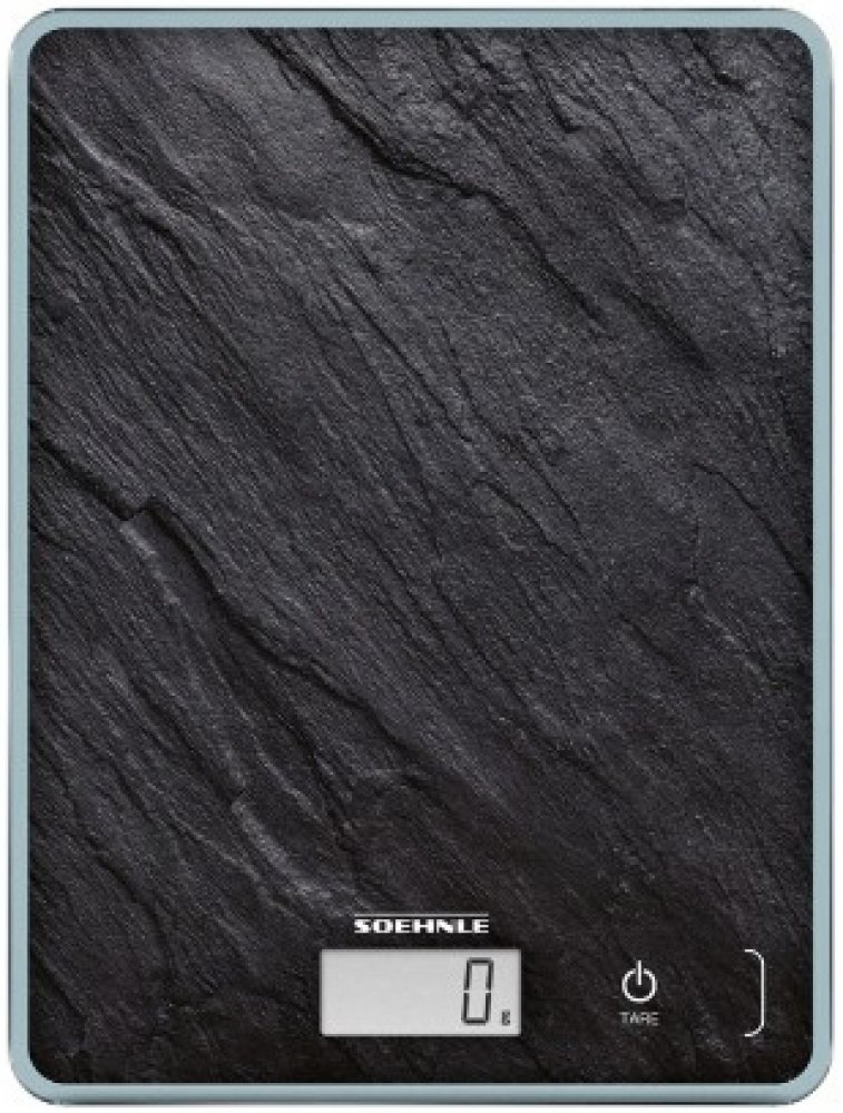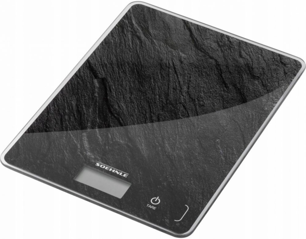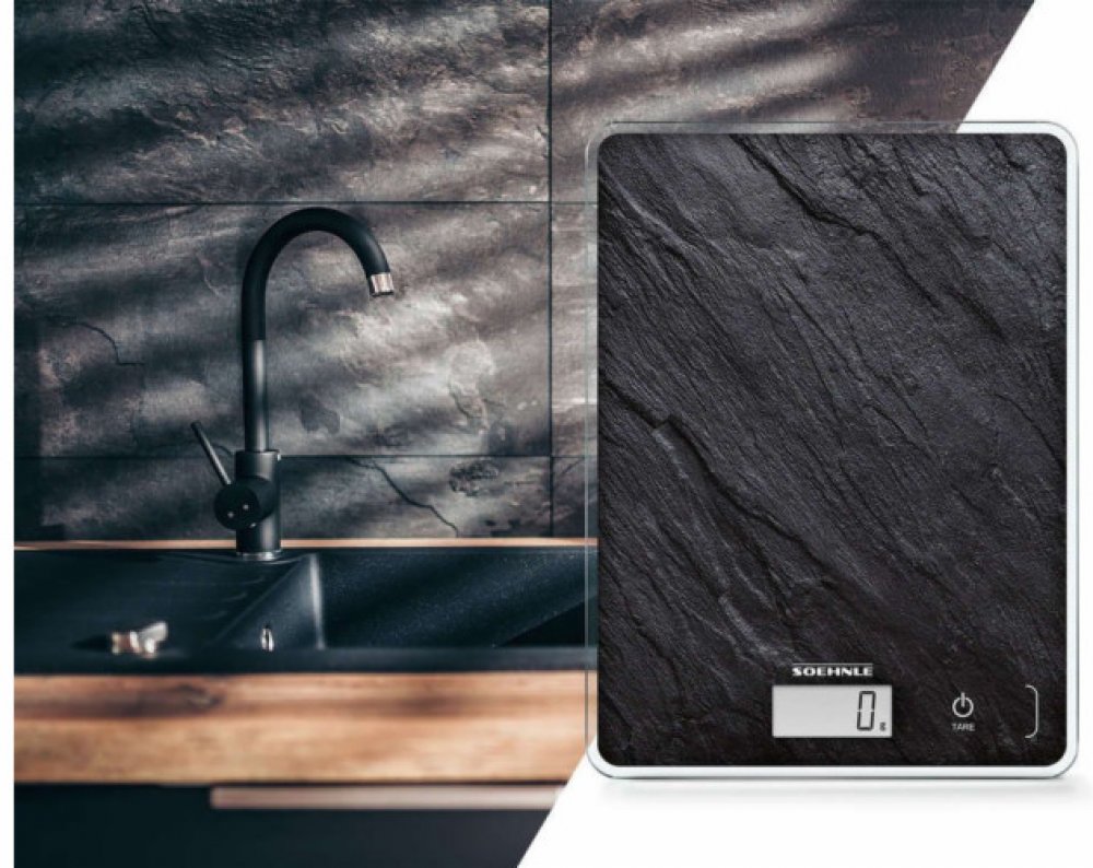 Kuchyňská váha zaujme svým moderním designem s břidlicovým efektem. S nosností 5 kg a funkcí tárování je ideální pro každodenní použití v kuchyni.