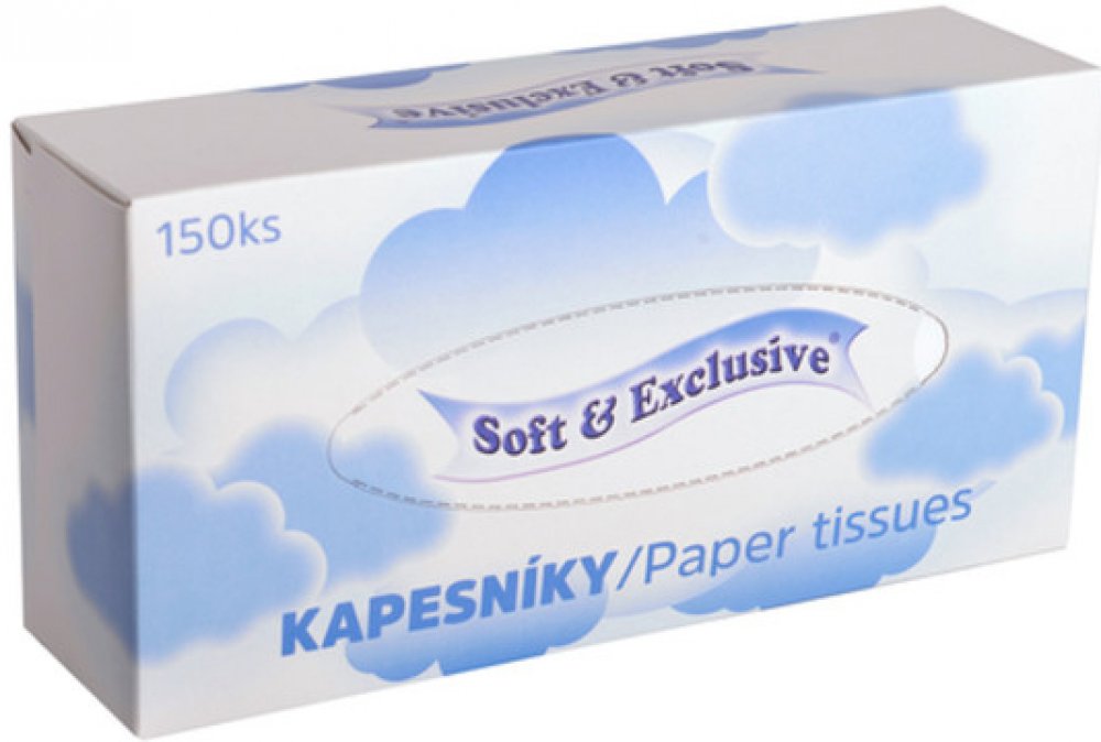-- Kapesníky papírové Soft, 2vrstvé, 3 x 150 ks.