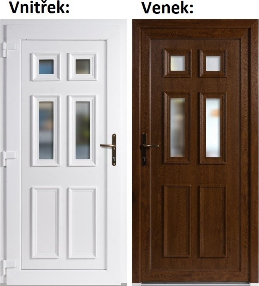 Vchodové plastové dveře Soft Becca, Zlatý dub/bílá, levé, otevíravé dovnitř o rozměru 98x198cm z profilu SOFT WDS 70AD, nebo profilu GEALAN S8000 vynikají maximální kvalitou provedení. Vícekomorový profil, který je zesílen pozinkovanou ocelí, zajistí tepelnou a zvukovou izolaci i odolnost proti větru. Samozřejmostí je 5bodový bezpečnostní zámek a 3D seříditelný pant. Dveře máme skladem a dodáme vá...