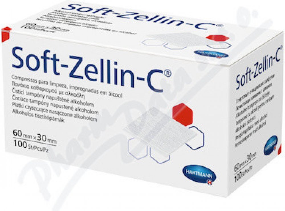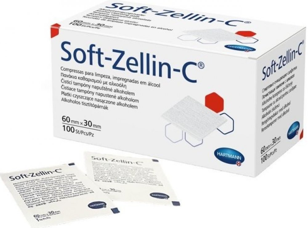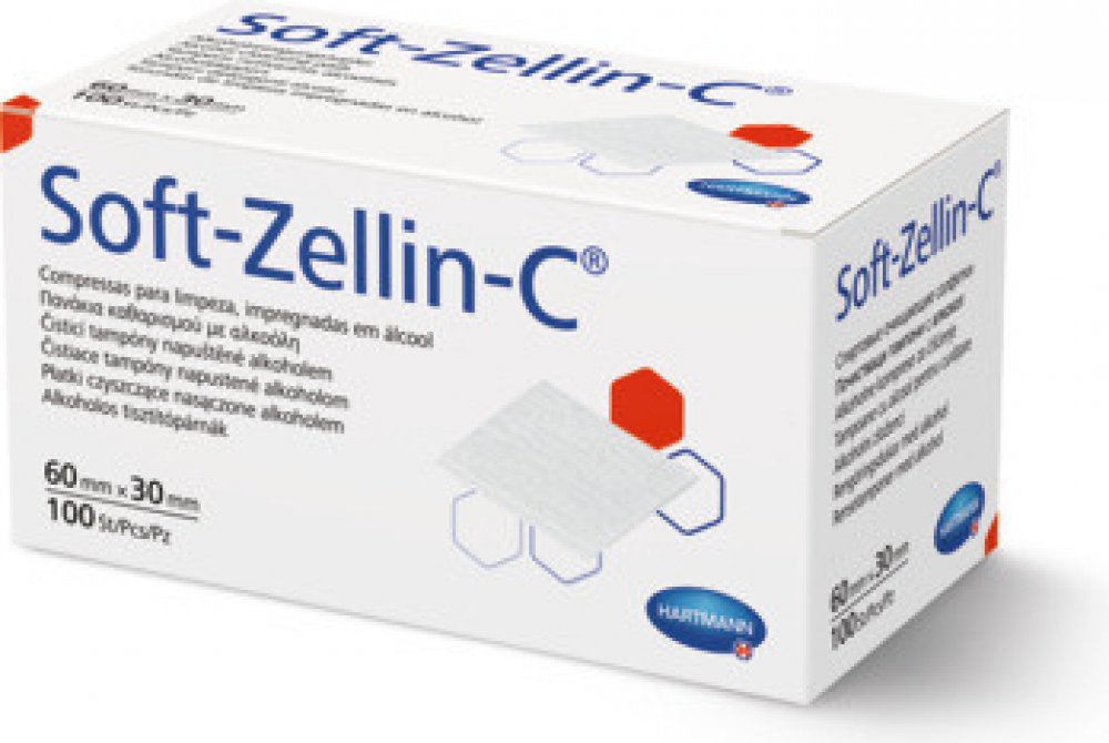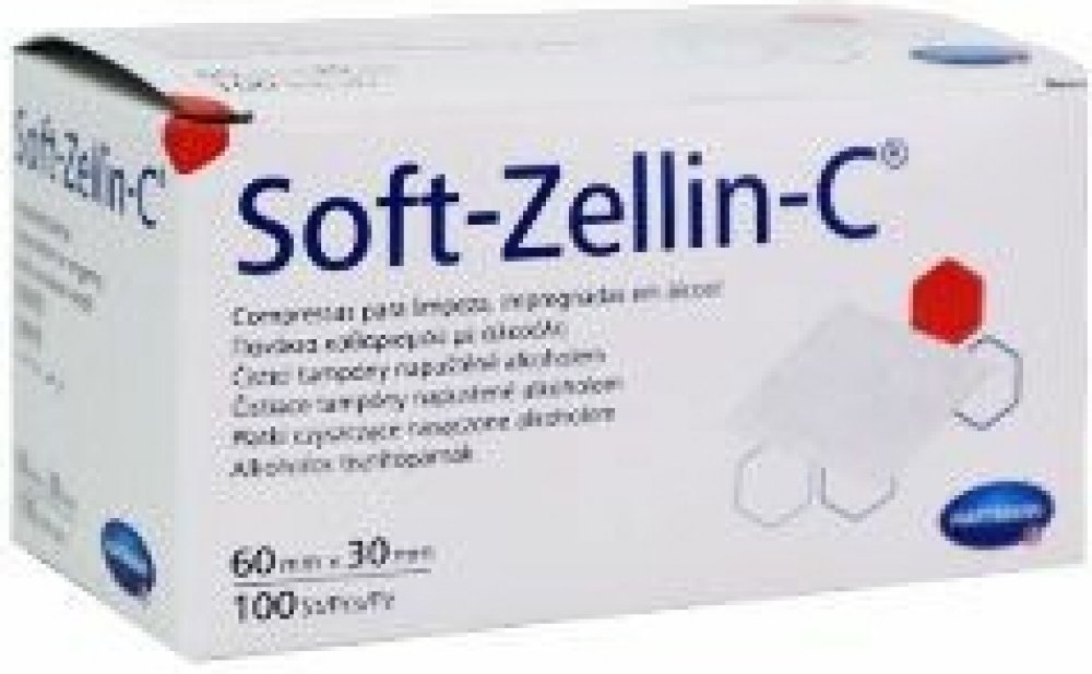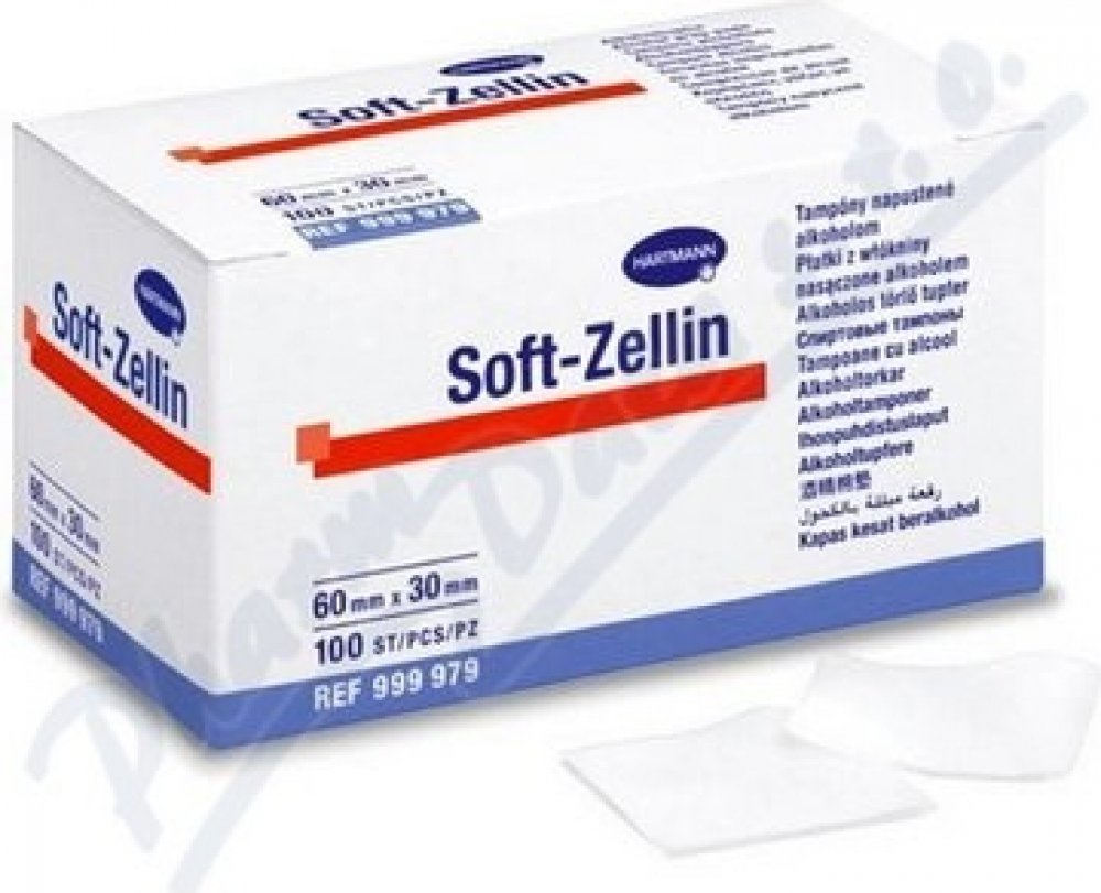 Tampon Soft-Zellin impregnované alkoholem slouží k pečlivé dezinfekci. Dezinfekční roztok je zadržen díky vhodně upravenému povrchu a zpevněné "tissue" vložce. Každý kus je zvlášť zataven, takže zůstává sterilní až do použití. Vhodné k očištění kůže před injekcí.