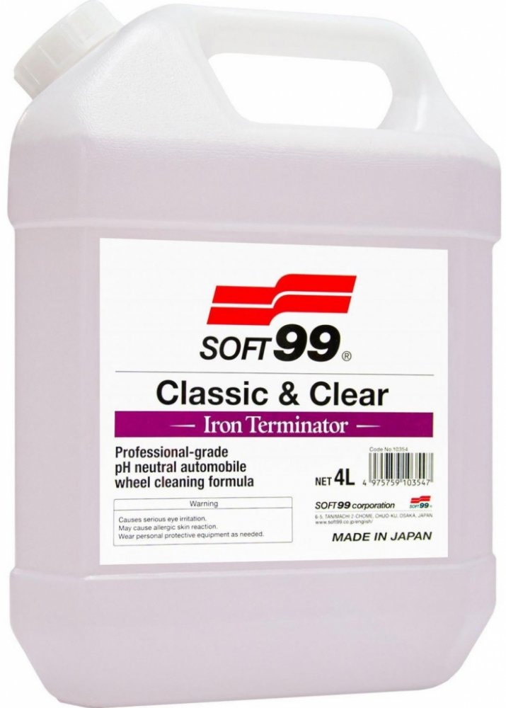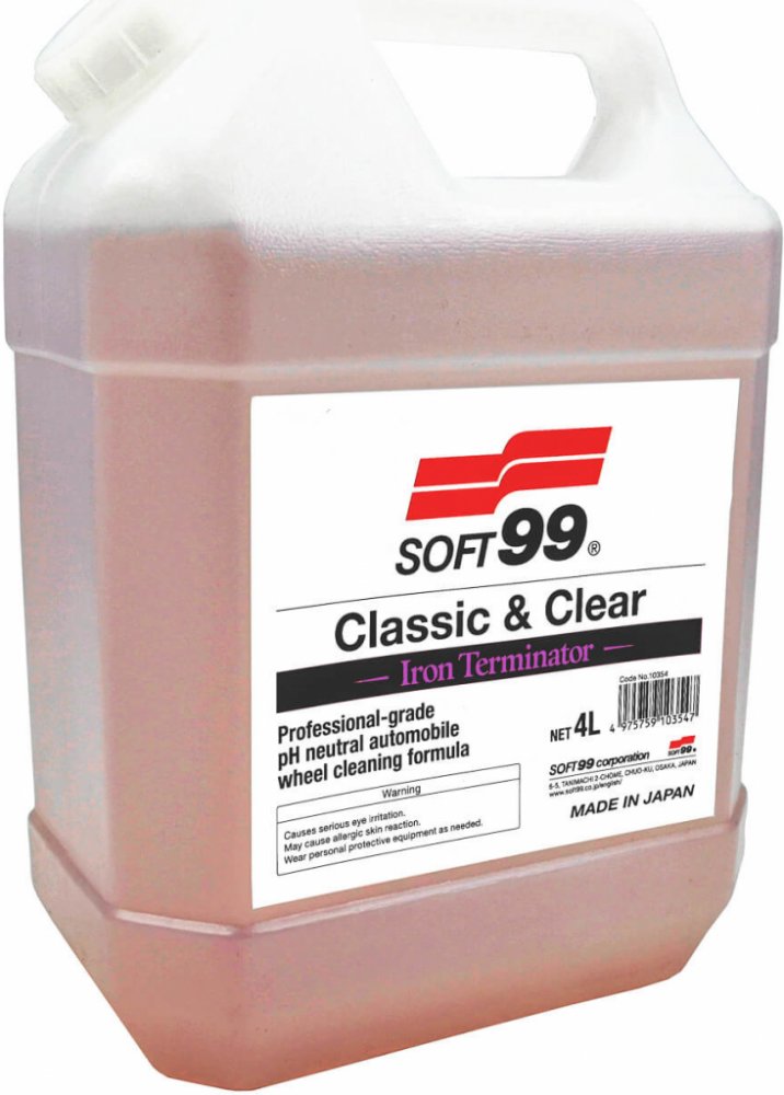 Soft99 Iron Terminator odstraní i ty nejvíce odolné železité částice a nánosy brzdového prachu. Díky vyvážené hodnotě pH je přípravek bezpečný pro všechny druhy lakovaných ráfků, včetně leštěných. Iron Terminator je vhodný také na dekontaminaci laku karoserie před nanesením vosku nebo jiné ochrany laku. Použít jej můžete i na skla a plasty, přípravek je šetrný ke všem materiálům. Vysoká účinnost spolu se sníženým zápachem, který je typický pro přípravky na odstranění polétavé rzi, zajišťují komfortní aplikaci.