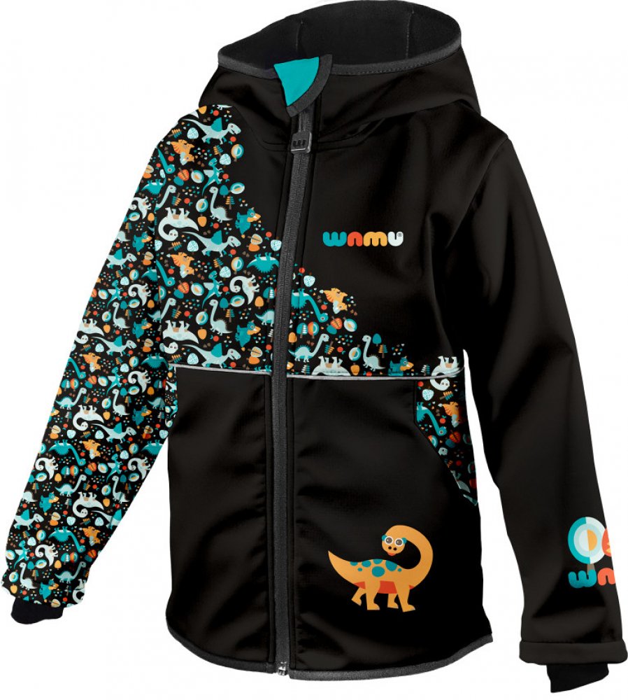 Softshellová bunda dětská DINOSAUŘI černo-hnědá