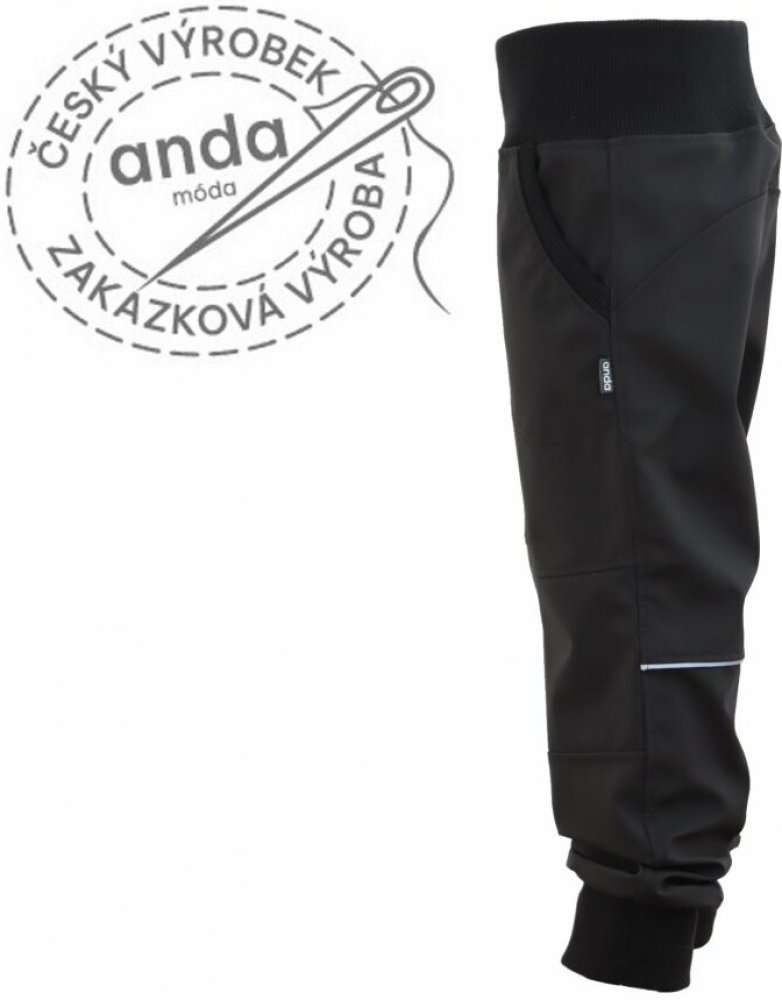 Softshellové kalhoty bez fleece ušijeme i na míru. Pohodlný střih, který neomezuje v pohybu. Kalhoty mají v pase náplet ve kterém je volně vložená guma a otvor pro regulaci. Praktické kapsy a reflexní prvek na zadním dílu pro lepší viditelnost a bezpečnost. Zakončení nohavic si můžete vybrat ve dvou variantách, klasický lem nebo brzdičku. Materiál odolává větru i lehkému dešti - ideální volba pro aktivní děti na ven během letních dnů.