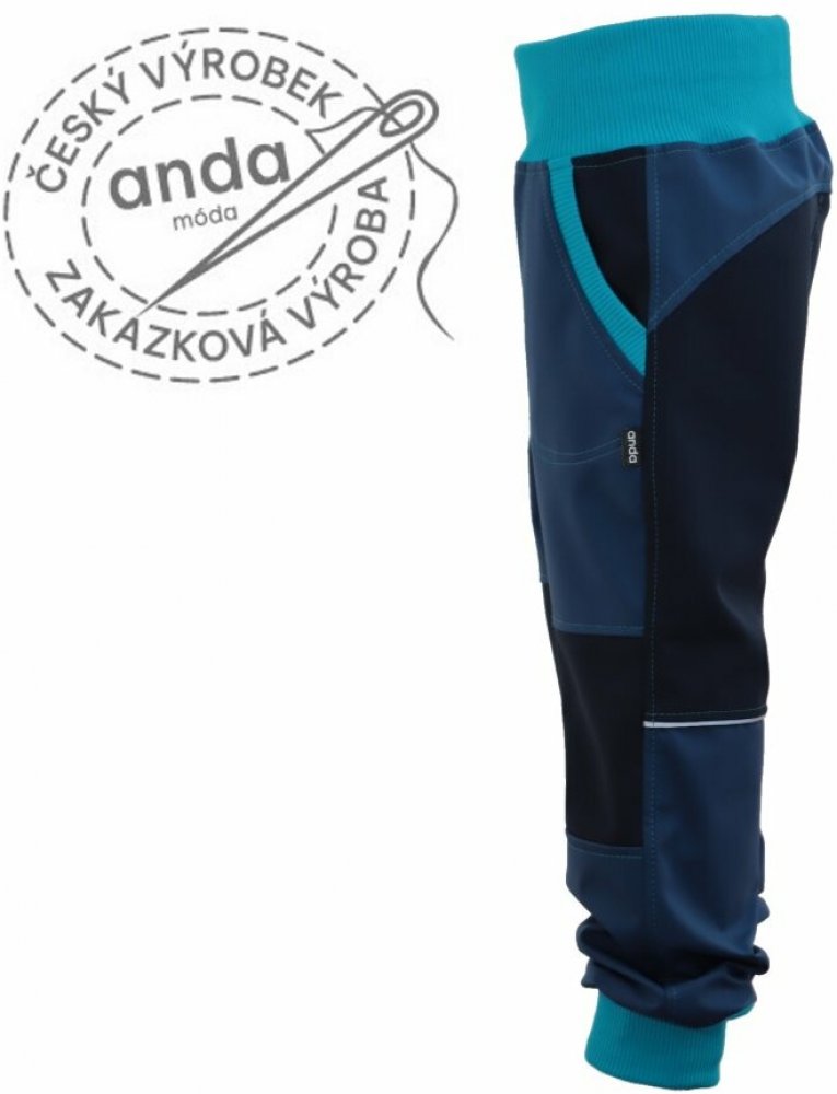 Softshellové kalhoty bez fleece ušijeme i na míru. Pohodlný střih, který neomezuje v pohybu. Kalhoty mají v pase náplet ve kterém je volně vložená guma a otvor pro regulaci. Praktické kapsy a reflexní prvek na zadním dílu pro lepší viditelnost a bezpečnost. Zakončení nohavic si můžete vybrat ve dvou variantách, klasický lem nebo brzdičku. Materiál odolává větru i lehkému dešti - ideální volba pro aktivní děti na ven během letních dnů.
