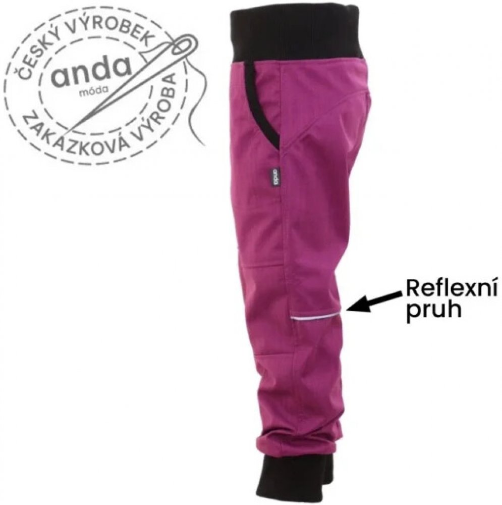 Softshellové kalhoty s bambusovým úpletem ušijeme i dle vlastních rozměrů. Pohodlný střih, který neomezuje v pohybu. Kalhoty mají v pase náplet ve kterém je volně vložená guma a otvor pro regulaci. Praktické kapsy a reflexní prvek na zadním dílu pro lepší viditelnost a bezpečnost. Zakončení nohavic si můžete vybrat ve dvou variantách, klasický lem nebo brzdičku. Materiál odolává větru i lehkému dešti - ideální volba pro aktivní děti na ven během podzimních a jarních dnů.