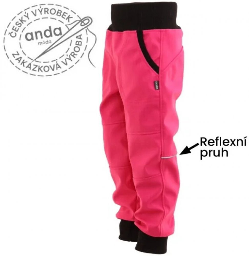 Softshellové kalhoty s bambusovým úpletem ušijeme i dle vlastních rozměrů. Pohodlný střih, který neomezuje v pohybu. Kalhoty mají v pase náplet ve kterém je volně vložená guma a otvor pro regulaci. Praktické kapsy a reflexní prvek na zadním dílu pro lepší viditelnost a bezpečnost. Zakončení nohavic si můžete vybrat ve dvou variantách, klasický lem nebo brzdičku. Materiál odolává větru i lehkému dešti - ideální volba pro aktivní děti na ven během podzimních a jarních dnů.