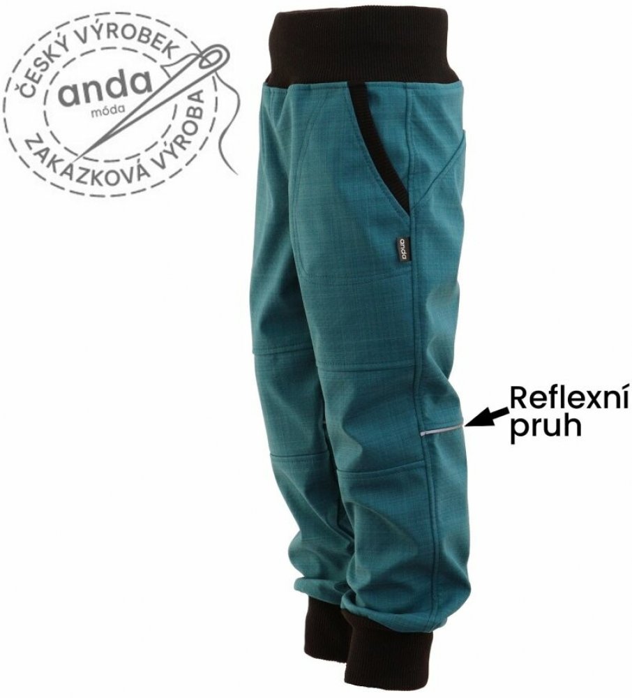 Softshellové kalhoty s bambusovým úpletem ušijeme i dle vlastních rozměrů. Pohodlný střih, který neomezuje v pohybu. Kalhoty mají v pase náplet ve kterém je volně vložená guma a otvor pro regulaci. Praktické kapsy a reflexní prvek na zadním dílu pro lepší viditelnost a bezpečnost. Zakončení nohavic si můžete vybrat ve dvou variantách, klasický lem nebo brzdičku. Materiál odolává větru i lehkému de...