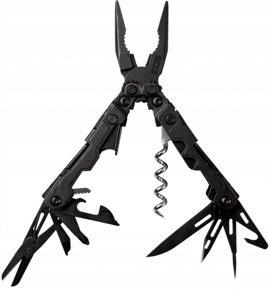 Multitool PowerLitre od společnosti SOG v černé barvě je multifunkční nástroj vybavený 18 potřebnými zařízeními. Funkce kombinátorů závisí na proprietárním mechanismu Compound Leverage, který zvyšuje a posiluje jejich aktivitu díky použití ozubeného kola, což umožňuje manipulaci jednou rukou.