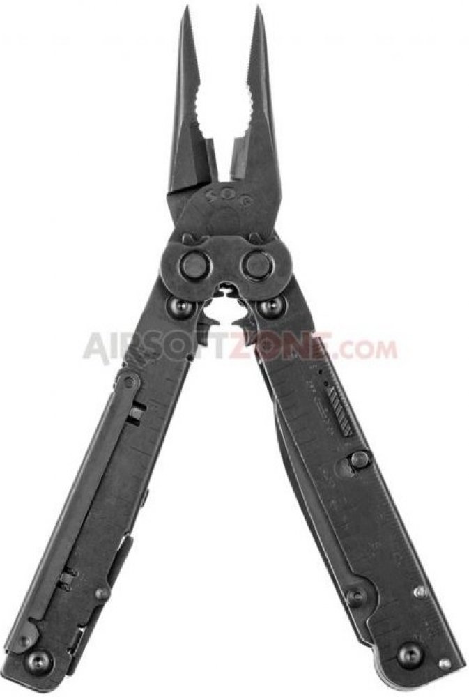 Spolehlivý multifunkční pomocník s různými nástroji od firmy SOG.Dodáván s nylonovým pouzdrem.Funkce:• kleště• kleště na uchopení• štípací kleště na tvrdé dráty• krimpovací kleště na dráty• krimpovací kleště na trhaviny• rovné ostří• plně vroubkované ostří• třístranný pilník• velký šroubovák• křížový šroubovák• otvírák na konzervy• malý šroubovák• otvírák na lahve• střední šroubovák• V-řezák• prav...