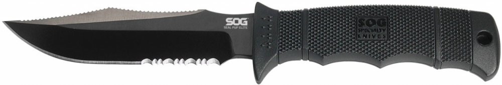 Taktický nůž SOG E37-TK Seal Pup Elite má dlouhou tradici, který byl zbraní elitních bojovníků SEAL a prošel náročným testováním. S čepelí s částečným zoubkováním z japonské oceli AUS-8 s černou práškovou povrchovou úpravou, která eliminuje lesk a zajišťuje odolnost vůči korozi. Tvarovaná rukojeť je vyrobena z materiálu GRN černé barvy, s diamantovým vzorem pro bezpečné uchopení. Dodává se s pouzd...