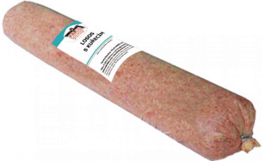 - Mletá směs z lososa a kuřecích drobů. Rybí maso bsahuje esenciální mastné kyseliny řady omega-3, vitamín D, C, E, B6, B12 a minerální látky, především stopové prvky (mezi nimi to jsou hlavně železo, selen a jód), velký obsah proteinů, které vyživují svaly.