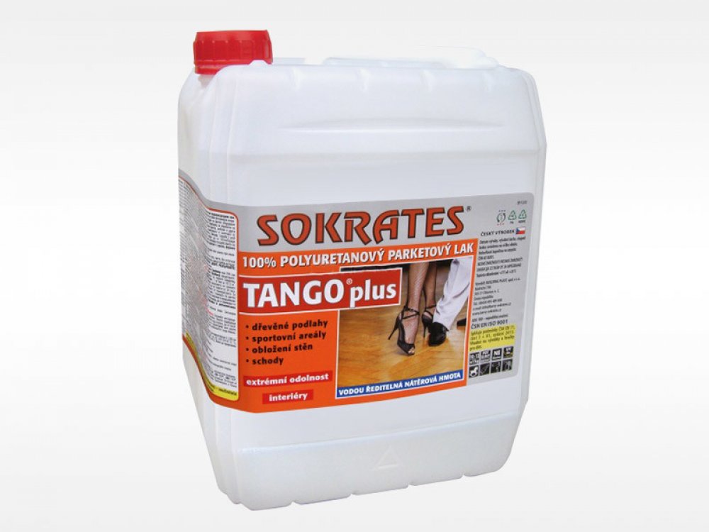 SOKRATES® Tango plus je jednosložkový profesionální parketový lak pro vnitřní prostředí. Je určen pro zvláště namáhané plochy. Je bez zápachu, nehořlavý, chemicky neutrální a výrazně chrání životní prostředí. Vyznačuje se extrémně rychlým nárůstem tvrdosti. Po zaschnutí poskytuje vysoce kvalitní čiré nátěry, které jsou dokonale omyvatelné, odolné na oděr a bytové chemikálie, tvrdé, ale houževnaté. Povrch laku je po vyzrání – cca 10 dnech, dokonale odolný na zatížení vodou, před horkými šálky, horkou párou a pod. Lak zůstává trvale dokonalé čirý bez nejmenších známek žloutnutí.