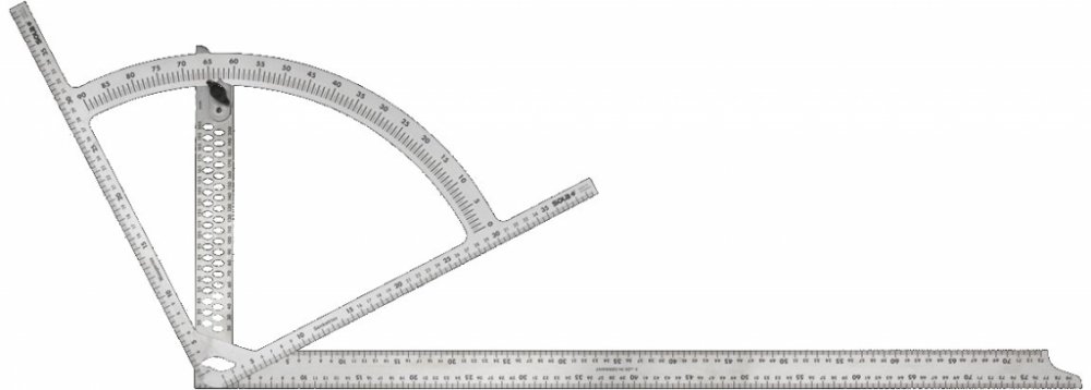 Tesařský úhelník Sola AW 800 SOLA - AW 800 - tesařský úhelník 800x400mm Vlastnosti: Vysoce elastický a odolný Nerezová ocel, mimořádně odolná Orýsovací otvory pro pohodlné vyznačování měr Velmi dobrá čitelnost výsledků měření díky zvýšenému kontrastu Flexibilní nastavení úhlu s přesnou aretací Technické údaje: Materiál: Nerezová ocel Povrch: Leštěný Stupnice: mm/cm, dvoudílná, s oboustranným potiskem Dílky stupnice: 1 mm Úhly: 90°, variabilní 0° – 90° Šířka: 35 mm Tloušťka: 1.5 mm Orýsovací otvory: 0.5 cm, 2 – 20.5 cm Rozsah dodávky: 1 ks