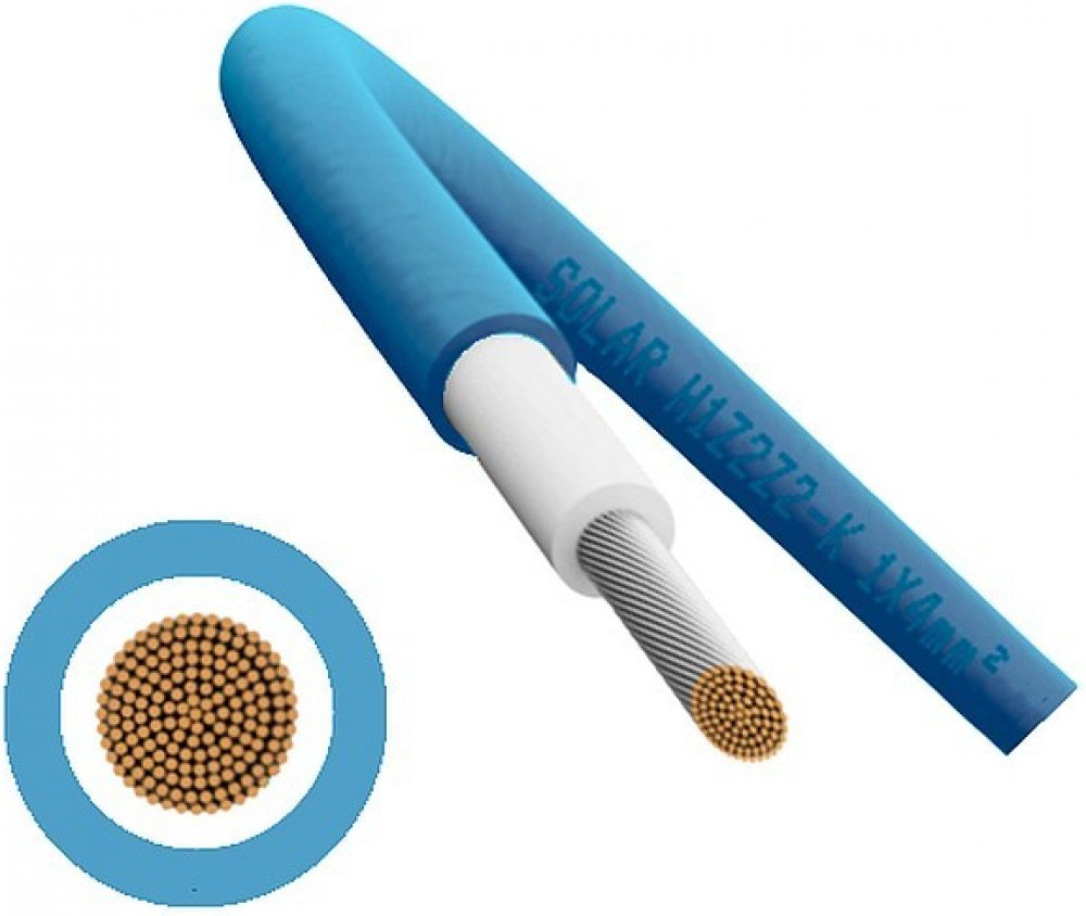 Vodič Solarkabel H1Z2Z2-K 6 bl modrý průřezu 6 mm2 pro použití na DC straně fotovoltaických systémů.