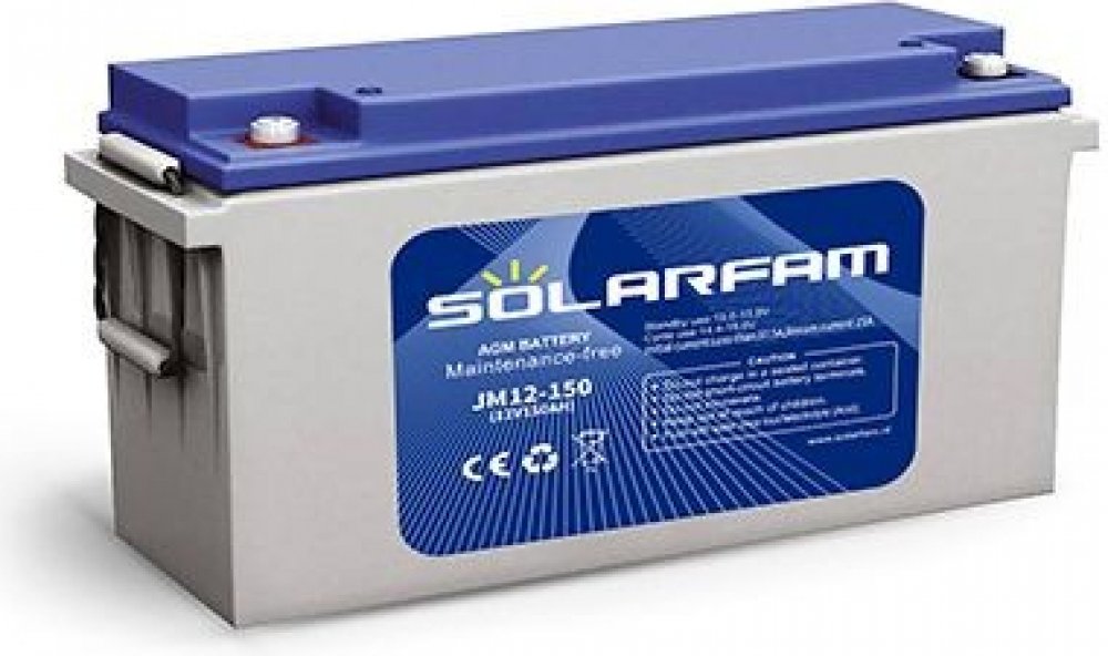 AGM akumulátor SOLARFAM je vhodný zejména do solárních a větrných energetických systémů a karavanů, ale i jako náhrada za baterie pro záložní systémy UPS, záložní zdroje, aplikace EZS, EPS, telekomunikace, výstražná mobilní a signalizační zařízení apod. Jedná se o bezúdržbový, hermeticky uzavřený akumulátor, což umožňuje libovolnou pracovní polohu.