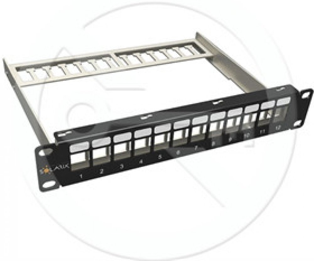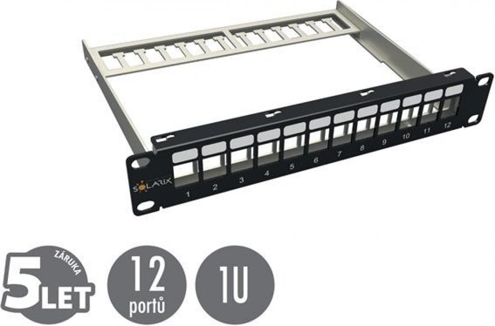 Patch panel Solarix s označením SX12M-0-STP-BK-UNI-10 je univerzální neosazený patch panel,