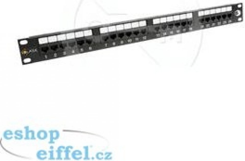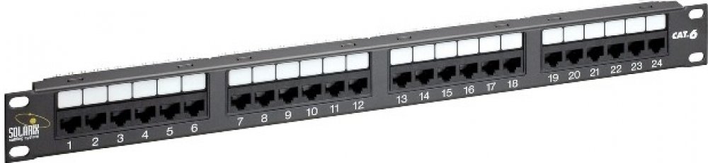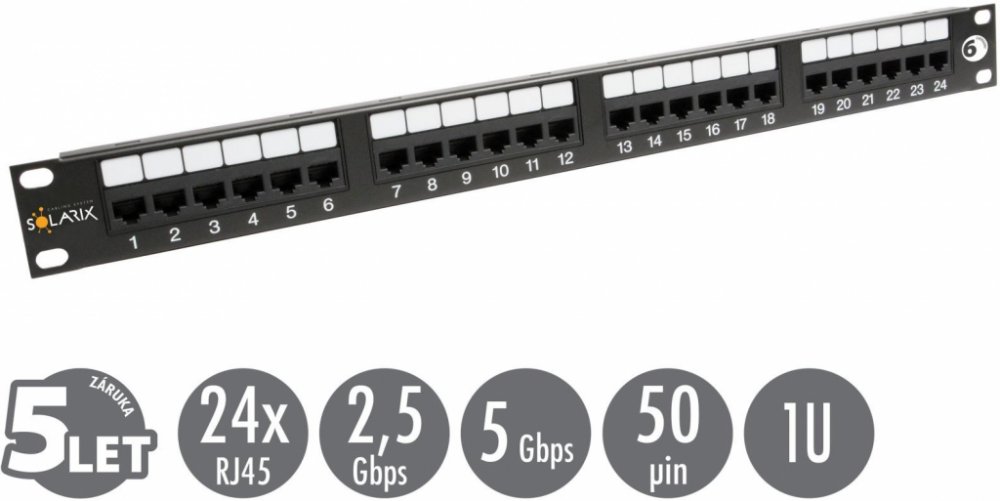 Solarix CAT6 UTP patch panel s označením SX24-6-UTP-BK je vysoce kvalitní panel CAT6, který splňuje požadavky na komponenty této kategorie definované ve standardech TIA/EIA 568, EN 50173 a ISO 11801 včetně všech nejnovějších aktualizací. Tento panel je testován pro šířku pásma až do 350 MHz, čímž převyšuje požadavky specifikované pro CAT6. Panel je dodáván ve verzi s 24 porty RJ45 a je osazen modu...
