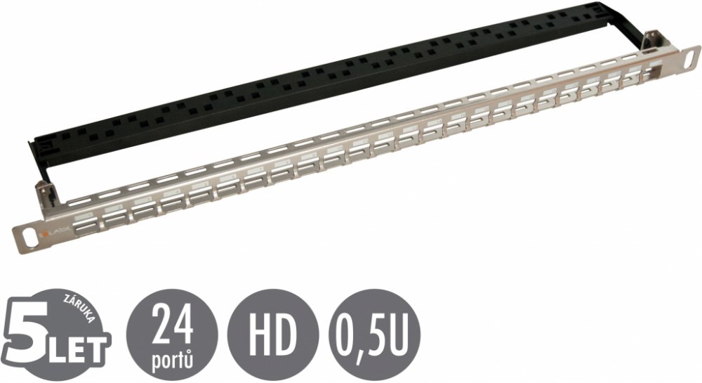 Neosazený patch panel s označením SX24HDM-0-STP-SL-UNI je univerzální vysokohustotní 19" modulární patch panel, který je určen pro 24 keystonů strukturované kabeláže Solarix. Panel je kompatibilní s keystony z produktových řad Solarix - kategorie 5E, Solarix - kategorie 6 i Solarix kategorie 6A, které mají svorkovnici otočenou dozadu (tj. témeř všechny keystony Solarix kromě SXKJ-5E-UTP-BK-90 a SXKJ-5E-UTP-BK-D). Modulární provedení patch panelu umožňuje pohodlnou instalaci keystonů a díky vyvazovací liště, která je součástí dodávky panelu, i přehledné vyvázání a pevné uchycení datového kabelu přímo k tělu panelu. Barva tohoto univerzálního patch panelu Solarix je stříbrná, velikost v datovém rozvaděči je 0,5U. V případě potřeby je možné zaslepit volné porty záslepkou SXKJ-0-BK.