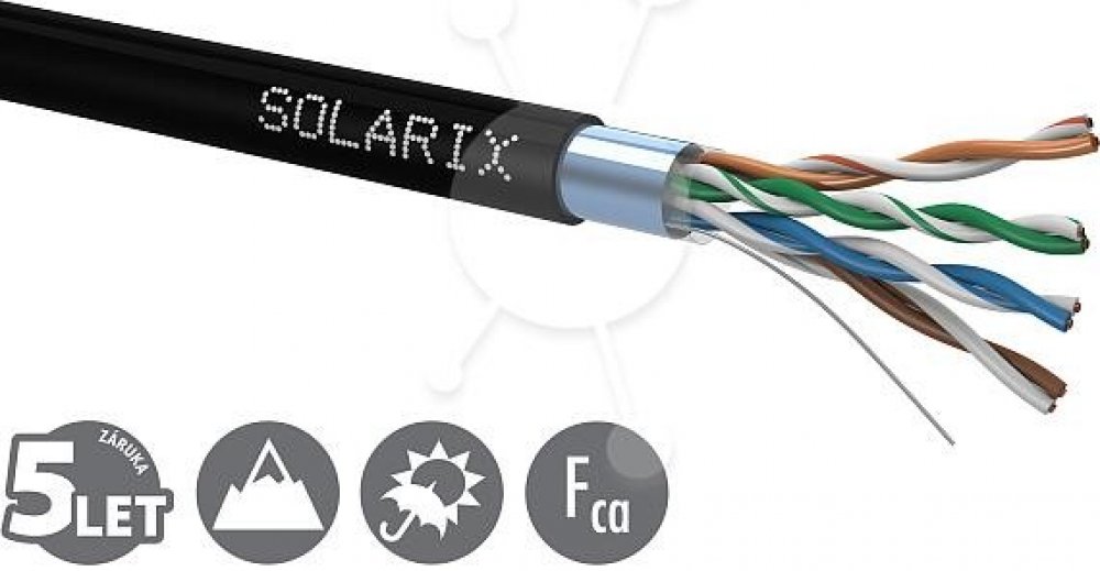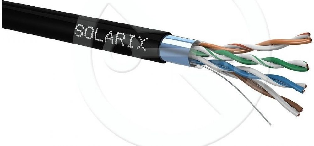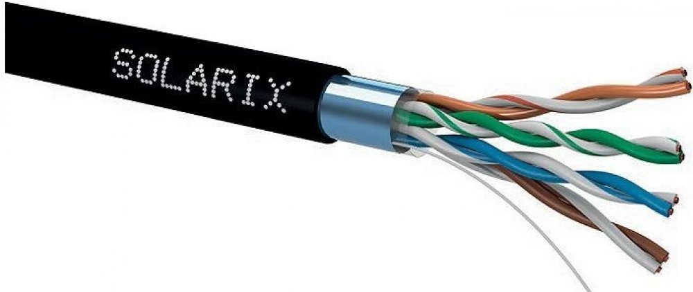 Instalační kabel Solarix venkovní FTP, Cat5ESXKD-5E-FTP-PE je venkovní stíněný kabel CAT5E s polyethylenovým pláštěm. Je určen pro náročnější instalace, kde běžný datový kabel neposkytuje dostatečnou ochranu. Společně s ostatními komponenty systému strukturované kabeláže Solarix vytváří řešení, které zaručuje dlouhou životnost, maximální výkon a bezproblémový chod počítačové sítě.